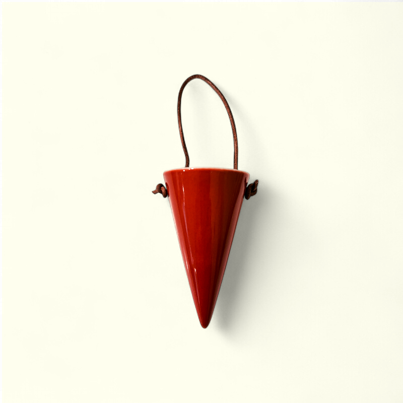 Kræmmerhuset er drejet og formet i hånden, hvilket giver hvert stykke sit eget udtryk. Den glatte porcelænsoverflade og det minimalistiske design gør det til et elegant indslag på juletræet, i vinduet eller som del af en stilren borddækning.
