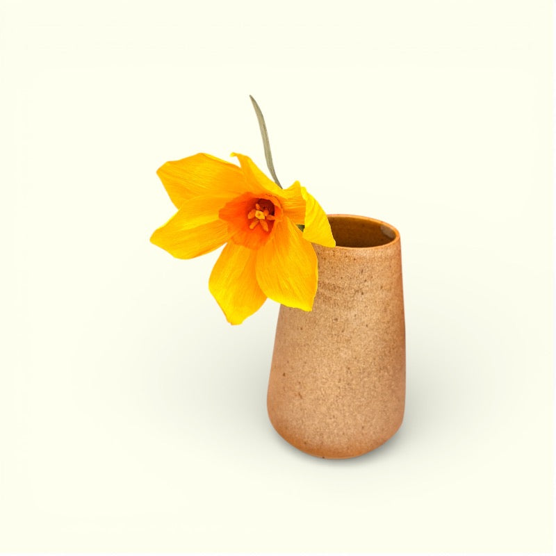 Påskeliljen er designet med en bøjelig stilk, så den nemt kan formes og tilpasses vasen eller indgå i en dekorativ buket sammen med andre papirsblomster.