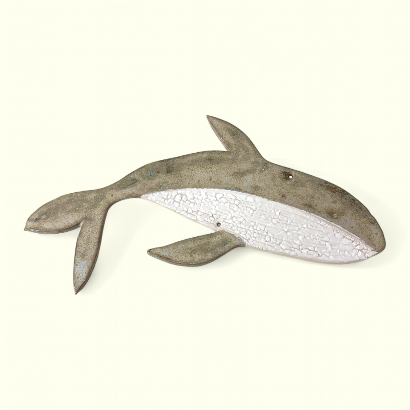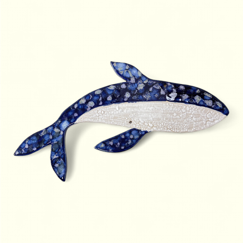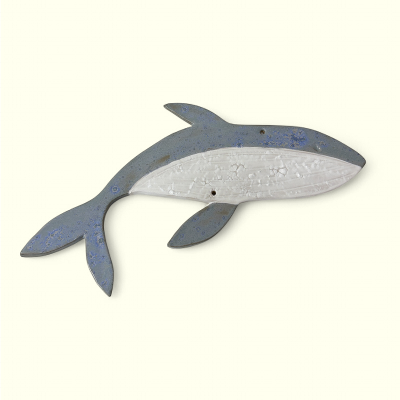 Med sin organiske form og levende glasur tilfører hvalen en maritim stemning til dit hjem – perfekt til væggen eller som en dekorativ skulptur på en hylde. Ingen hval er ens, da de varierer i glasur og udtryk, hvilket gør hver enkelt unik.
