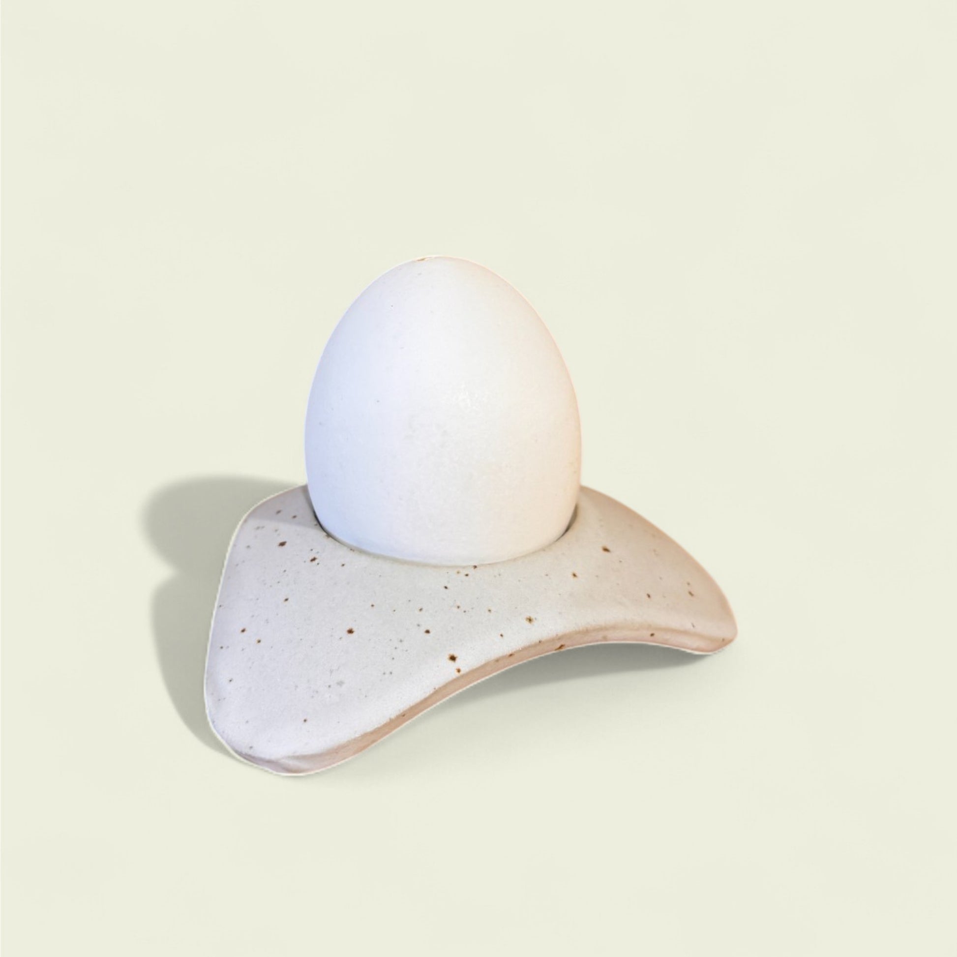 Formfasts æggebæger kombinerer funktion og æstetik i et stilrent design med tydelige referencer til 60’ernes og 70’ernes formsprog. Hvert bæger er drejet i hånden af keramiker Maja i Danmark og bærer præg af det unikke håndværk – ingen er helt ens.