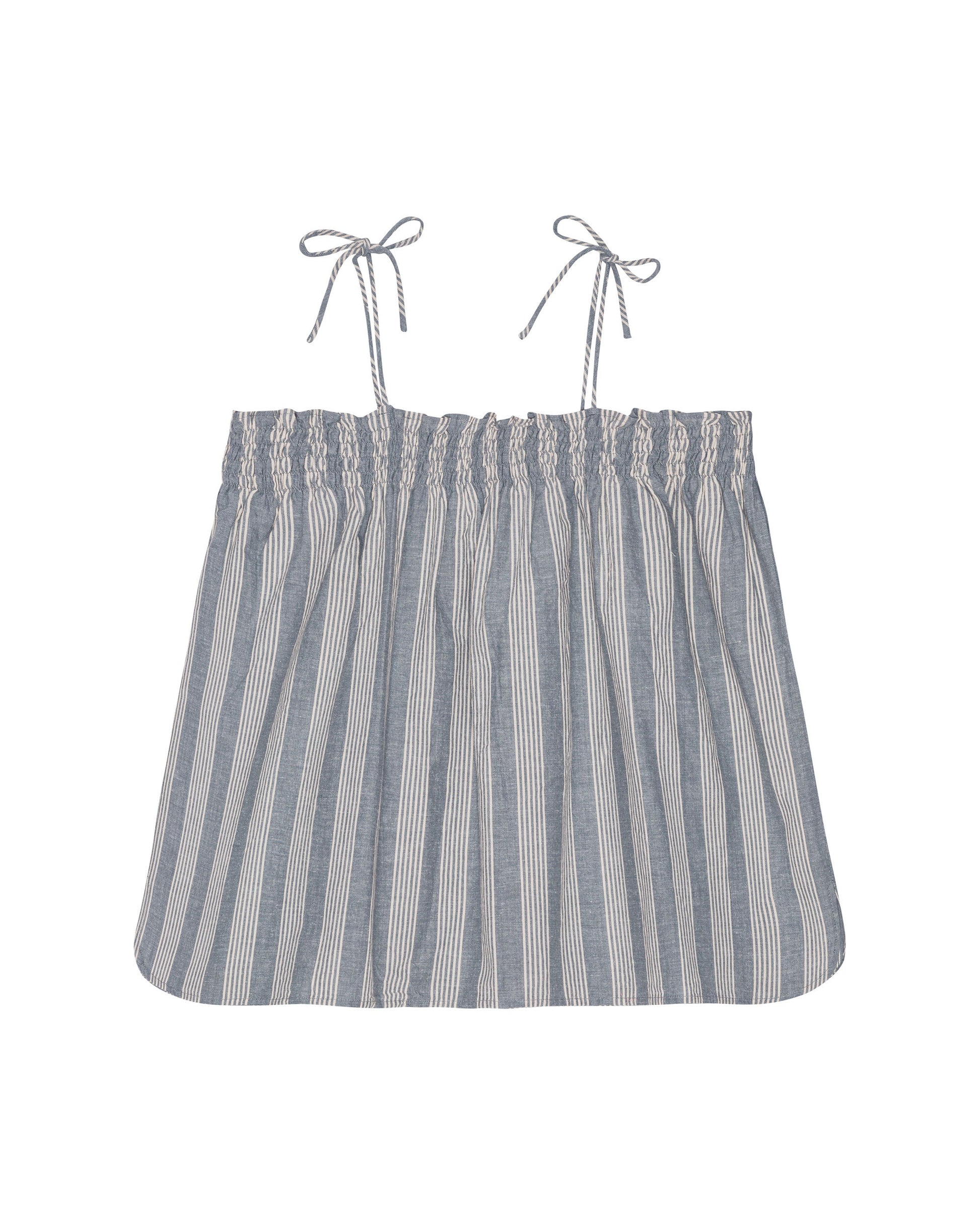 Den smukke Stockholm Strap Top fra Habiba er skabt til solrige dage og lune aftener. Med sit lette design i 100 % økologisk bomuldschambray føles den nærmest som ingenting på kroppen. De justerbare stropper sikrer en perfekt pasform, og det vævede stribemønster tilfører et stilrent, afslappet udtryk.