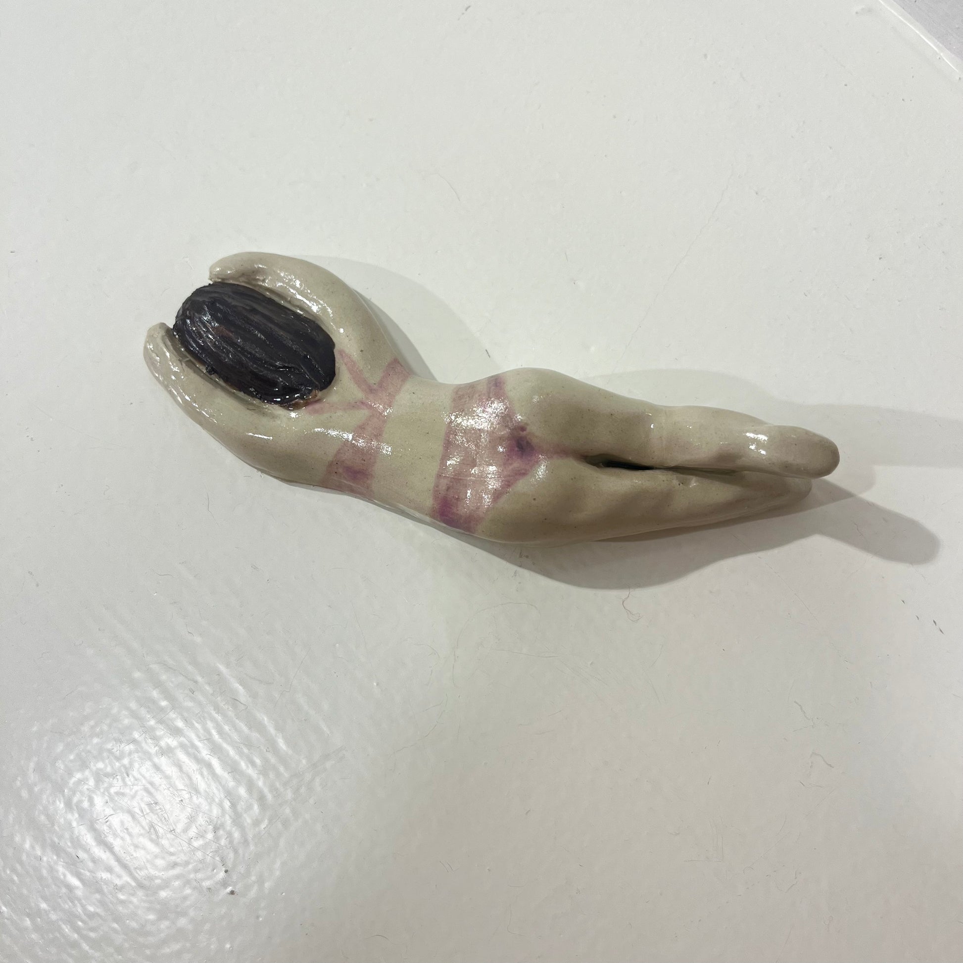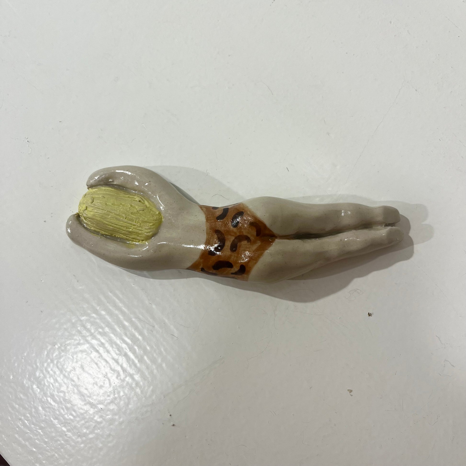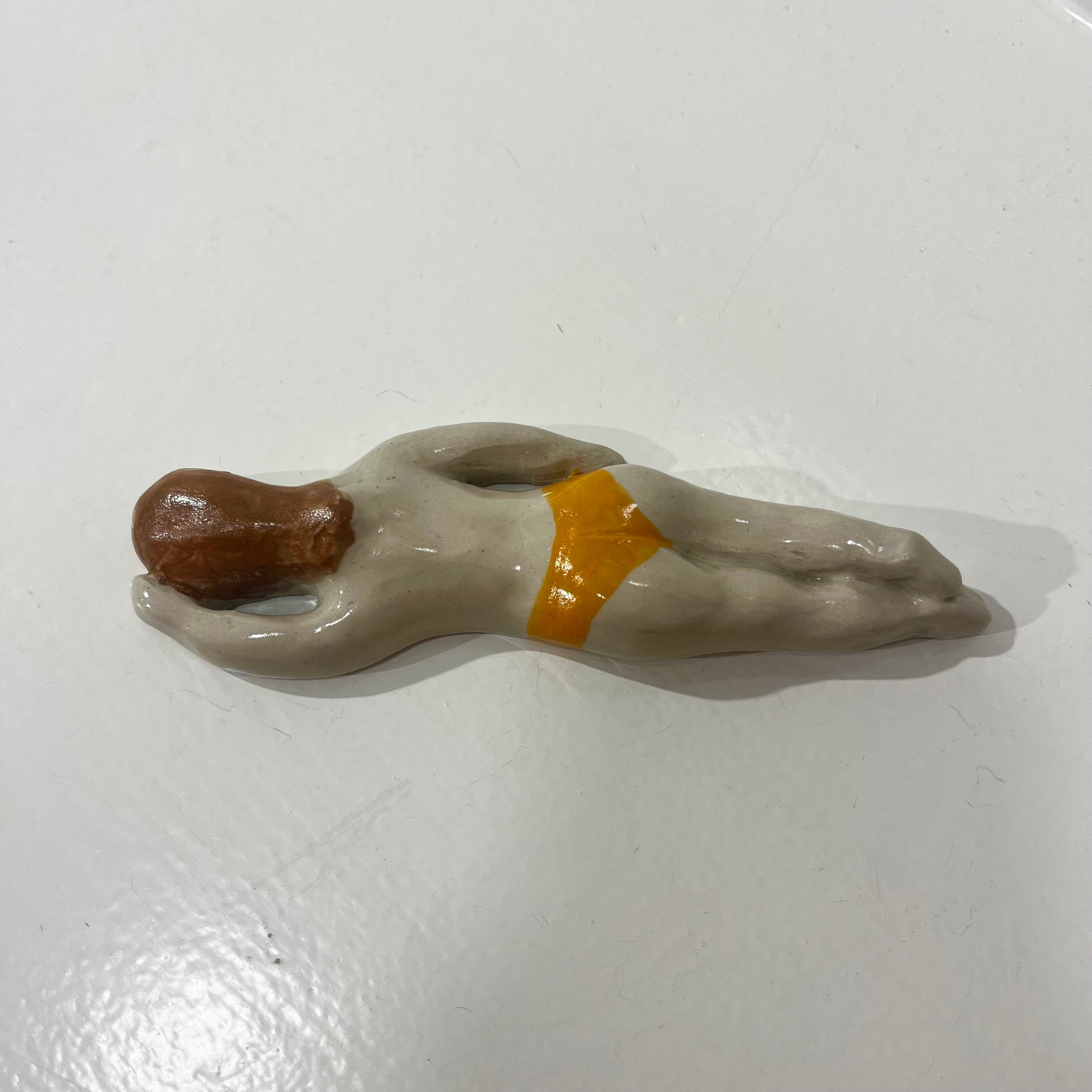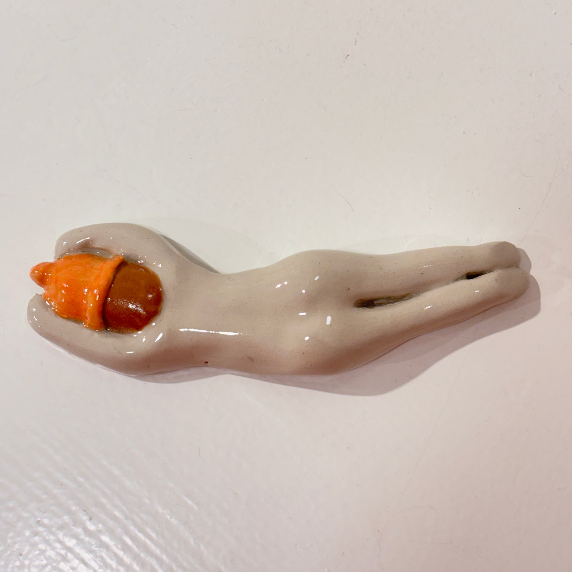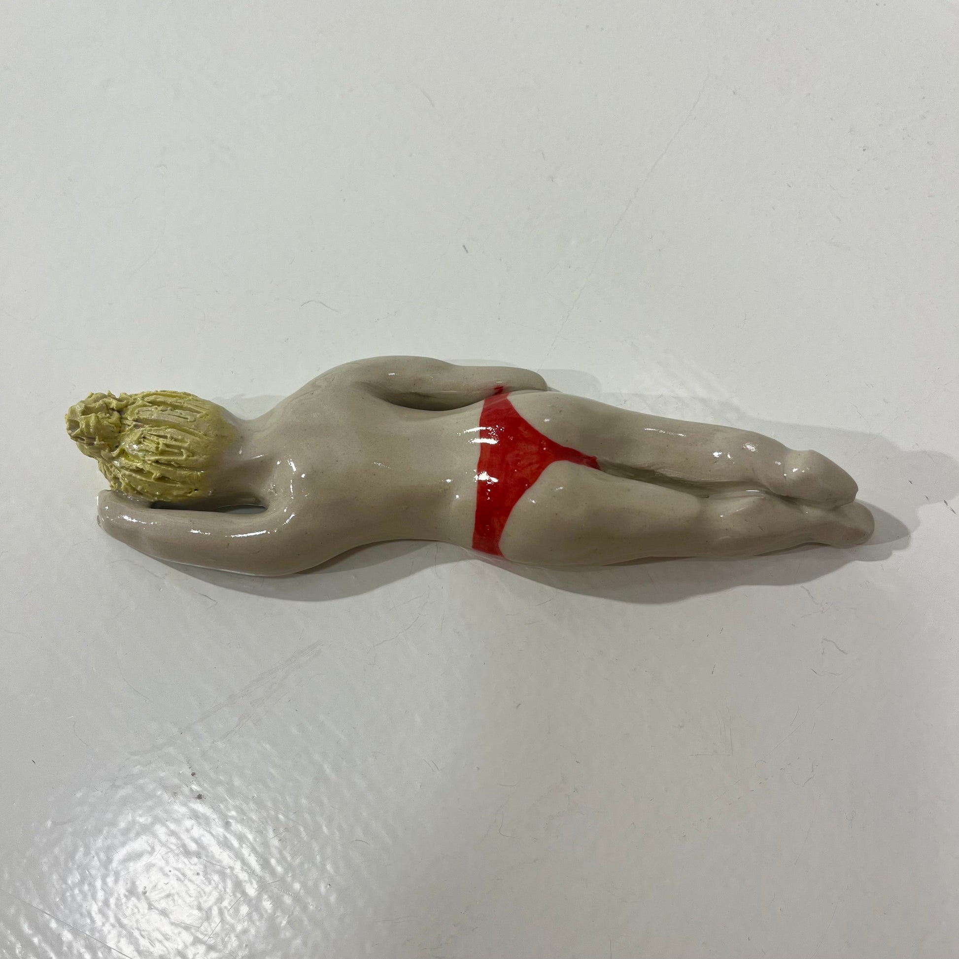Svømme Kvinder fra færøske Havdypp X Mirrror me art er en sjov og underfundig keramikfigur, der hylder havet. Figuren kan både hænges på væggen eller placeres som en dekorativ skulptur, der bringer en følelse af ro og frihed ind i dit hjem. De organiske former og glaserede detaljer giver en taktil oplevelse, mens designet tydeligt refererer til vinterbadere og den særlige forbindelse mellem krop og hav.