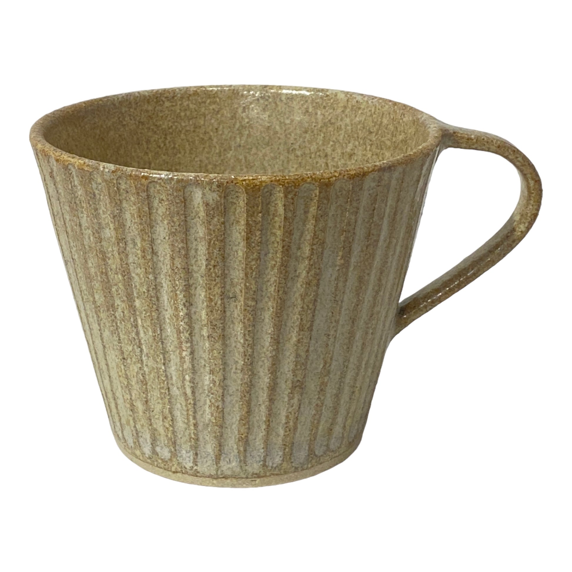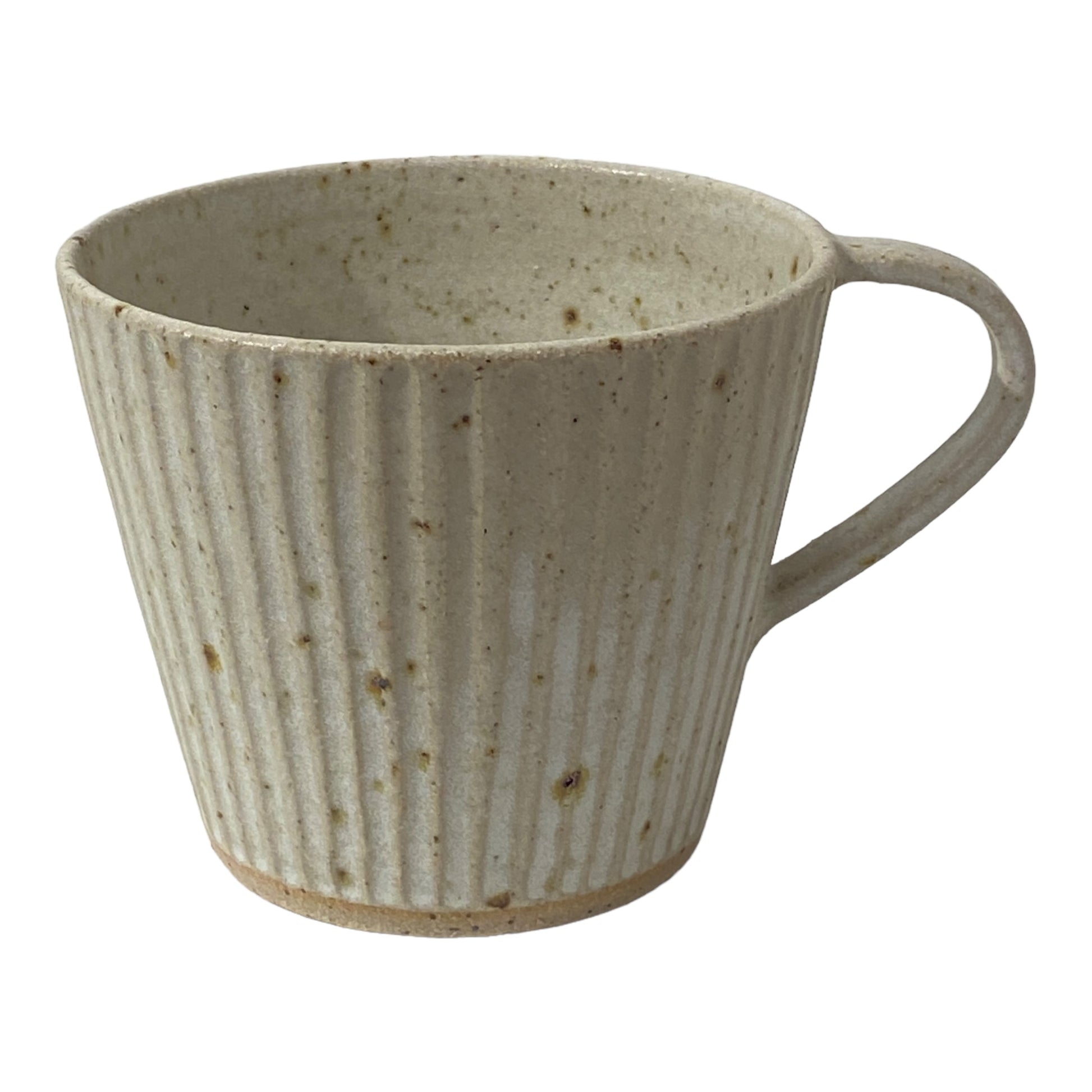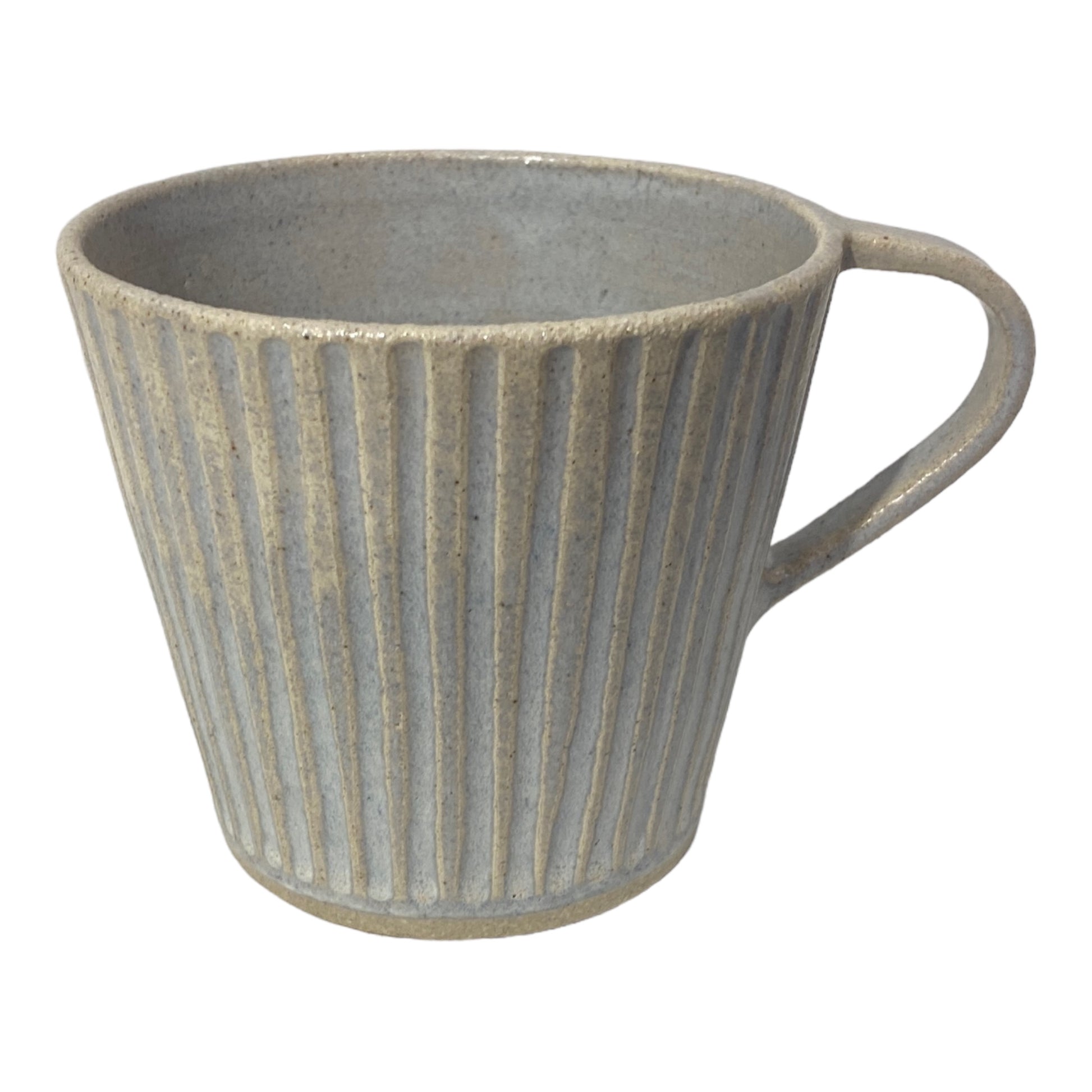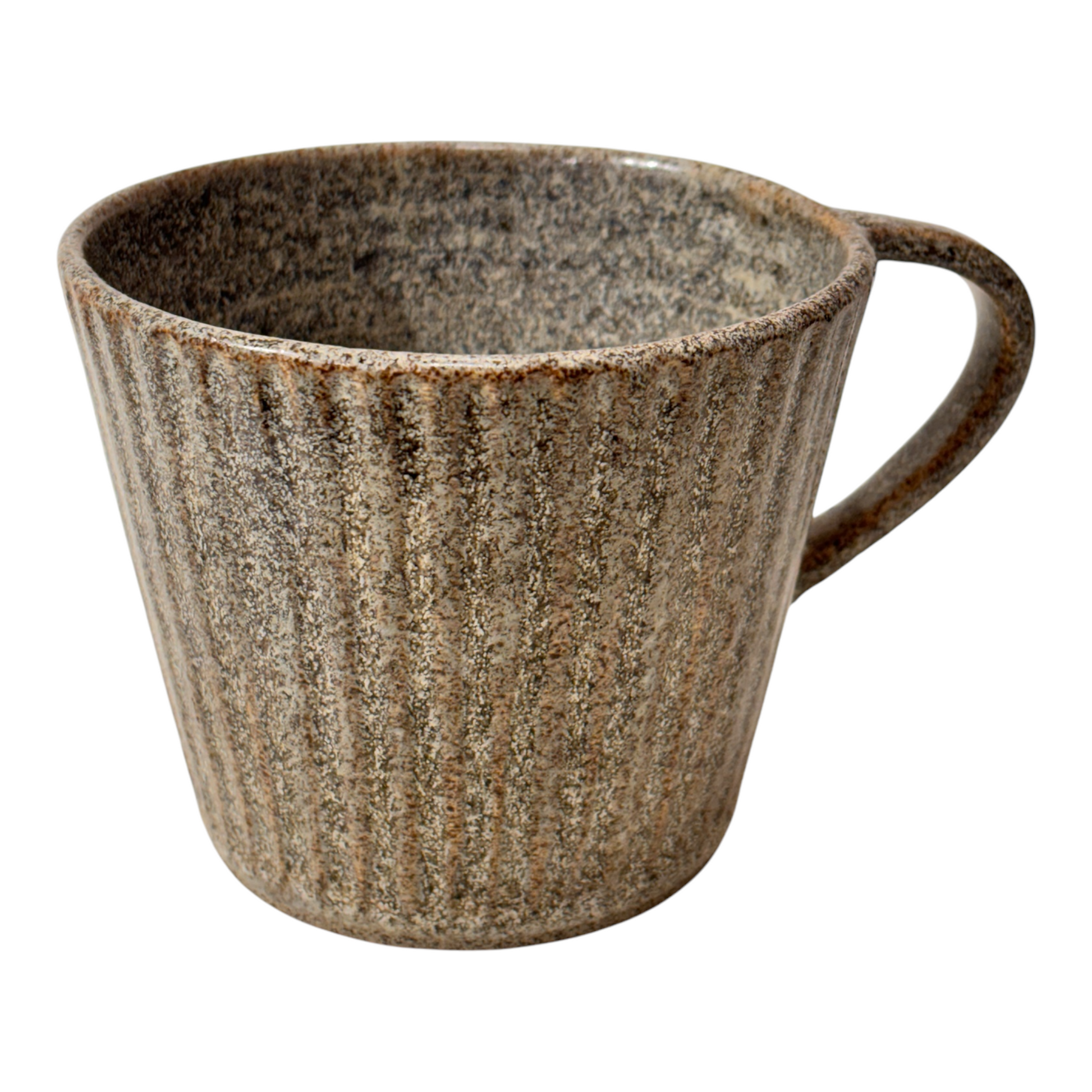 Oplev den enkle skønhed og håndværkets finesse med denne håndlavede keramik kop fra den danske keramiker Ida Høstrup. Hver kop er hånddrejet og dekoreret med elegante riller, der fremhæver keramikkens unikke tekstur og æstetik.