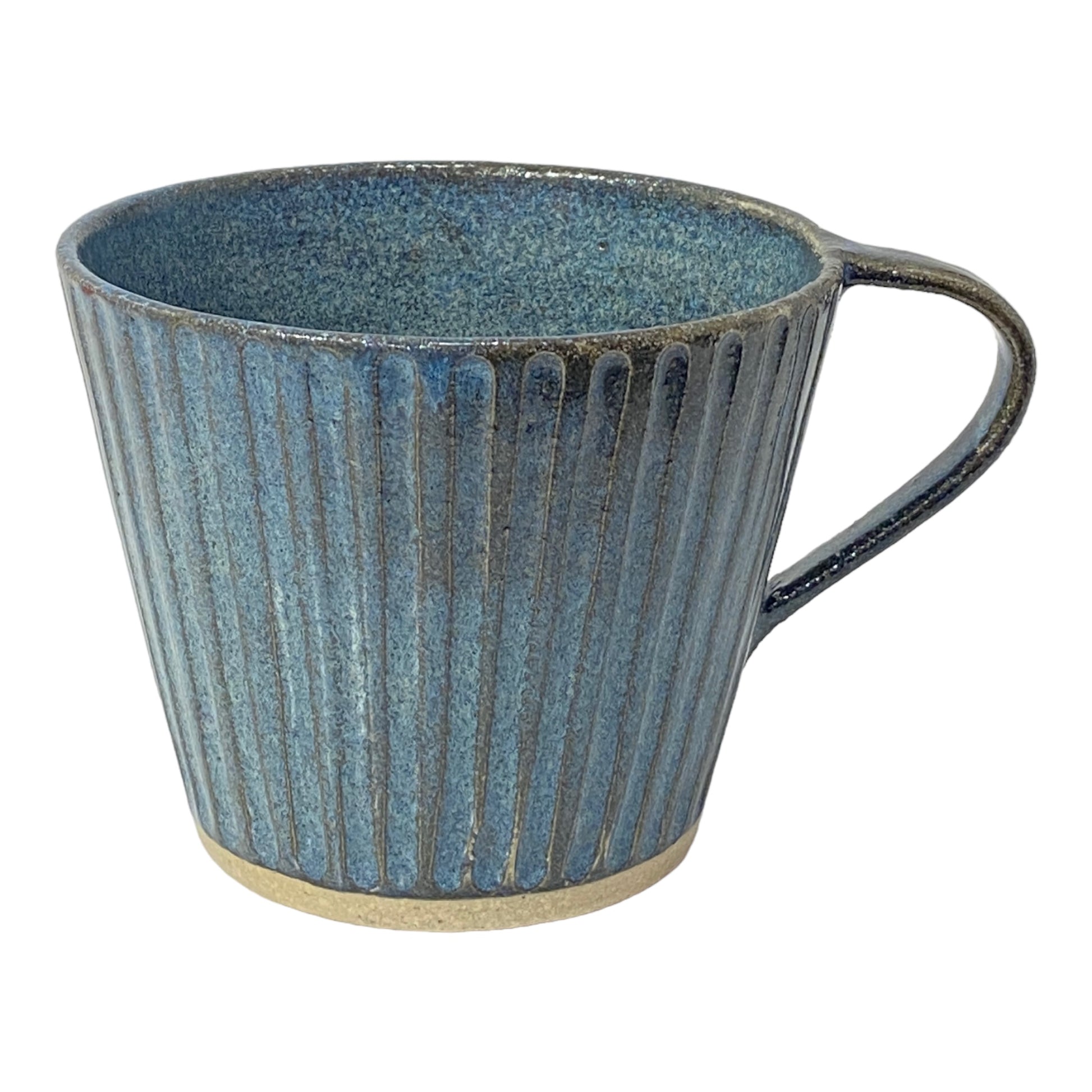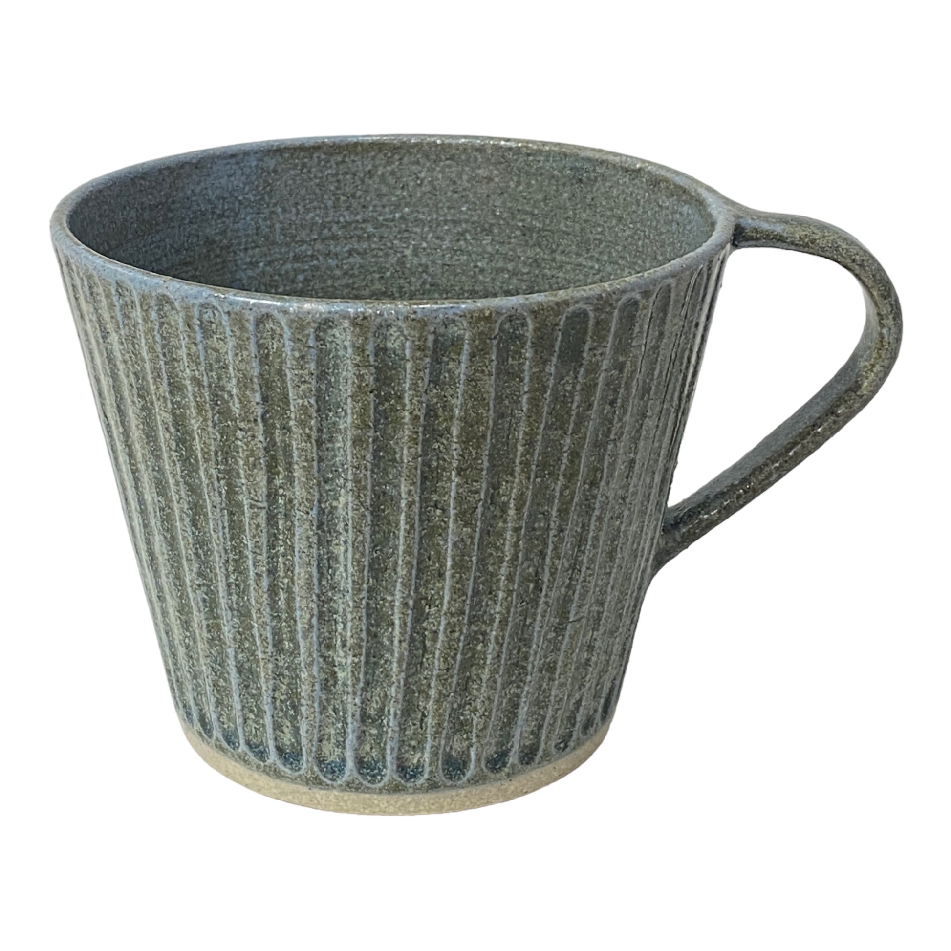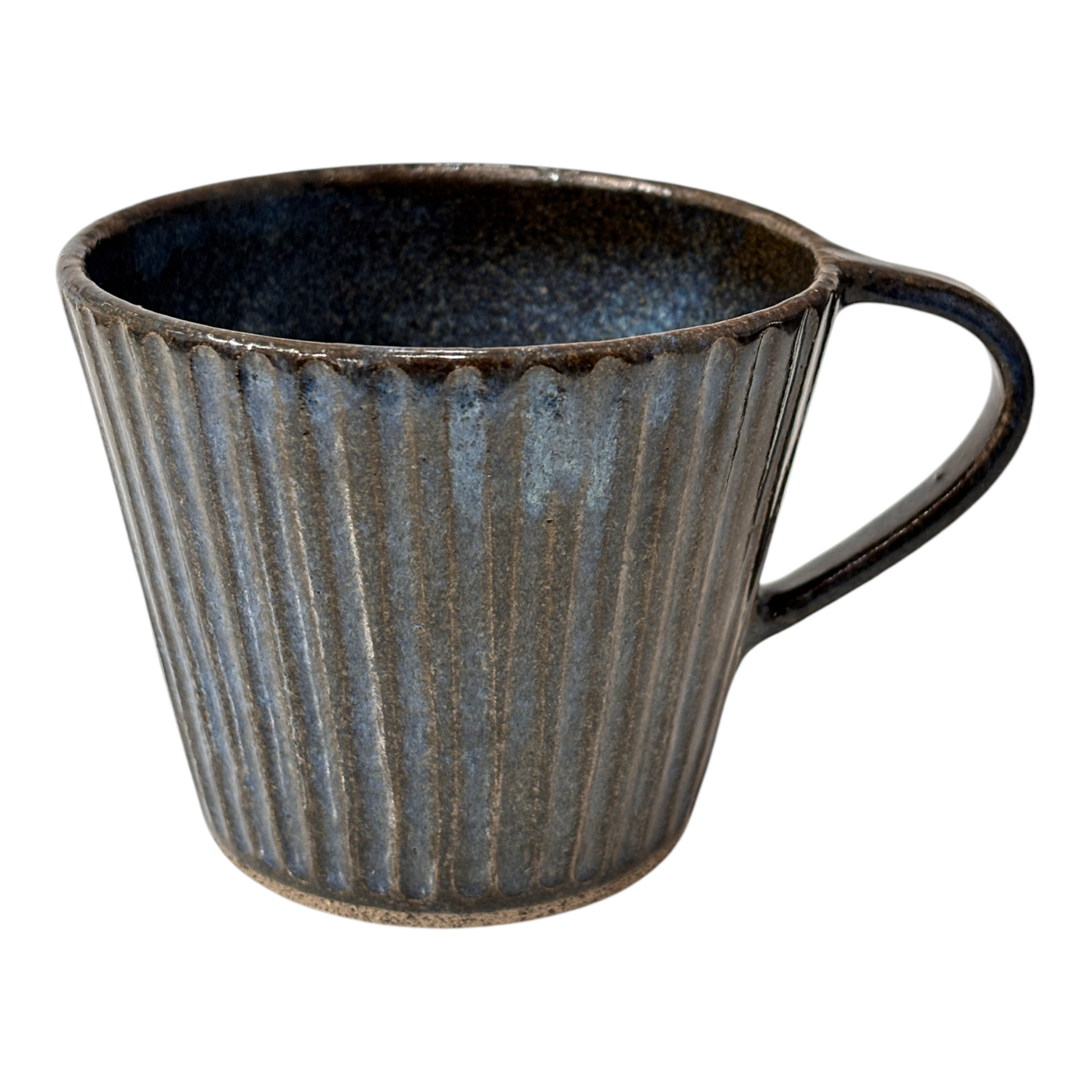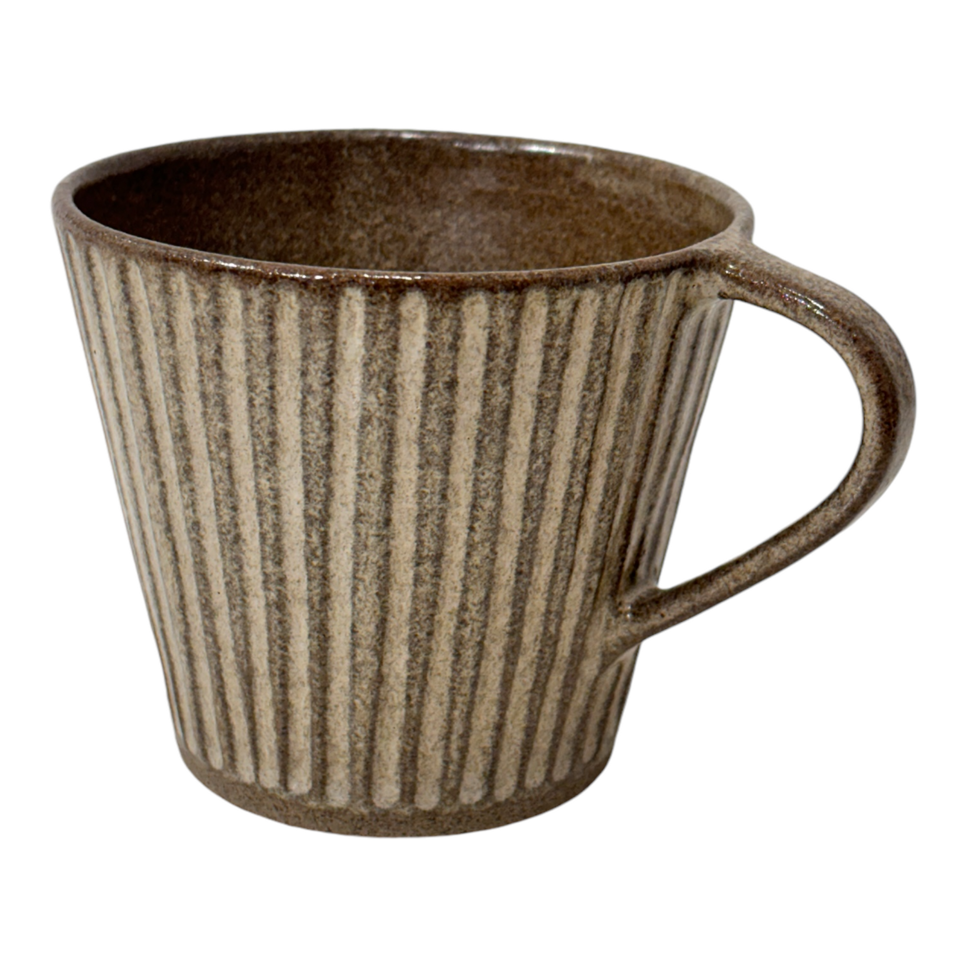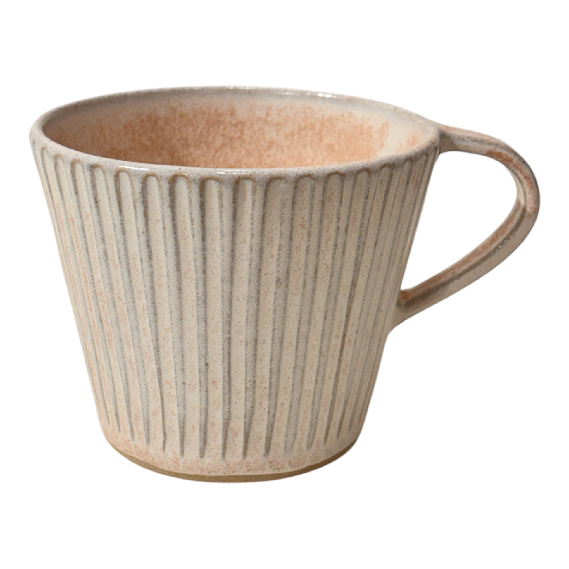 Oplev den enkle skønhed og håndværkets finesse med denne håndlavede keramik kop fra den danske keramiker Ida Høstrup. Hver kop er hånddrejet og dekoreret med elegante riller, der fremhæver keramikkens unikke tekstur og æstetik.