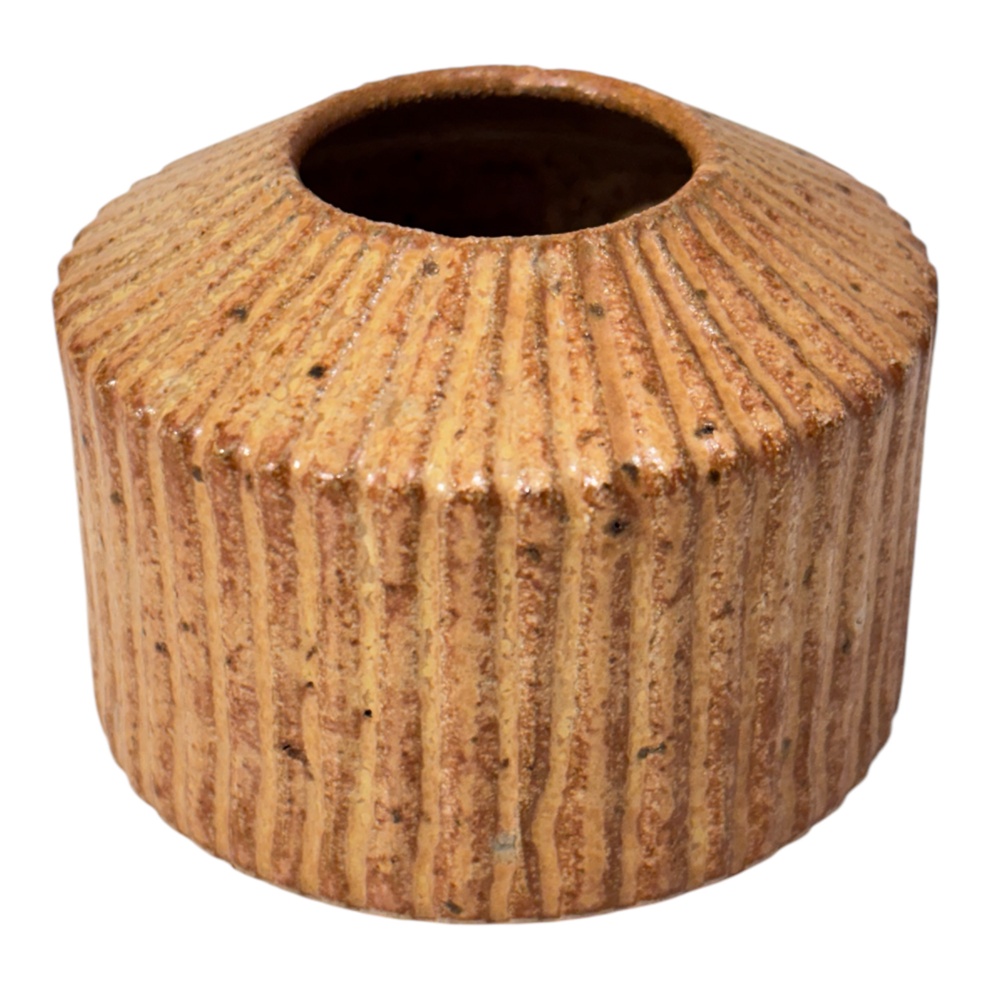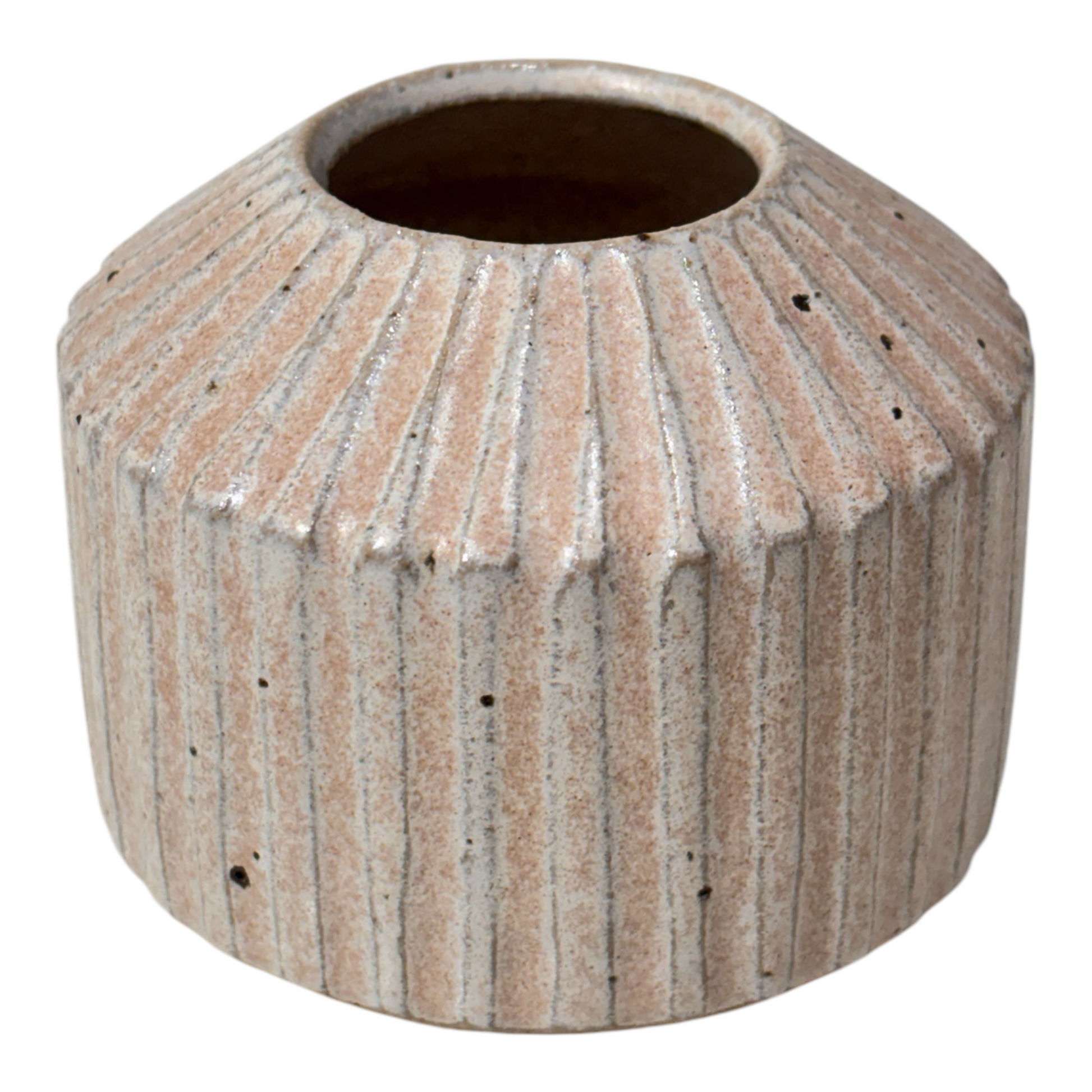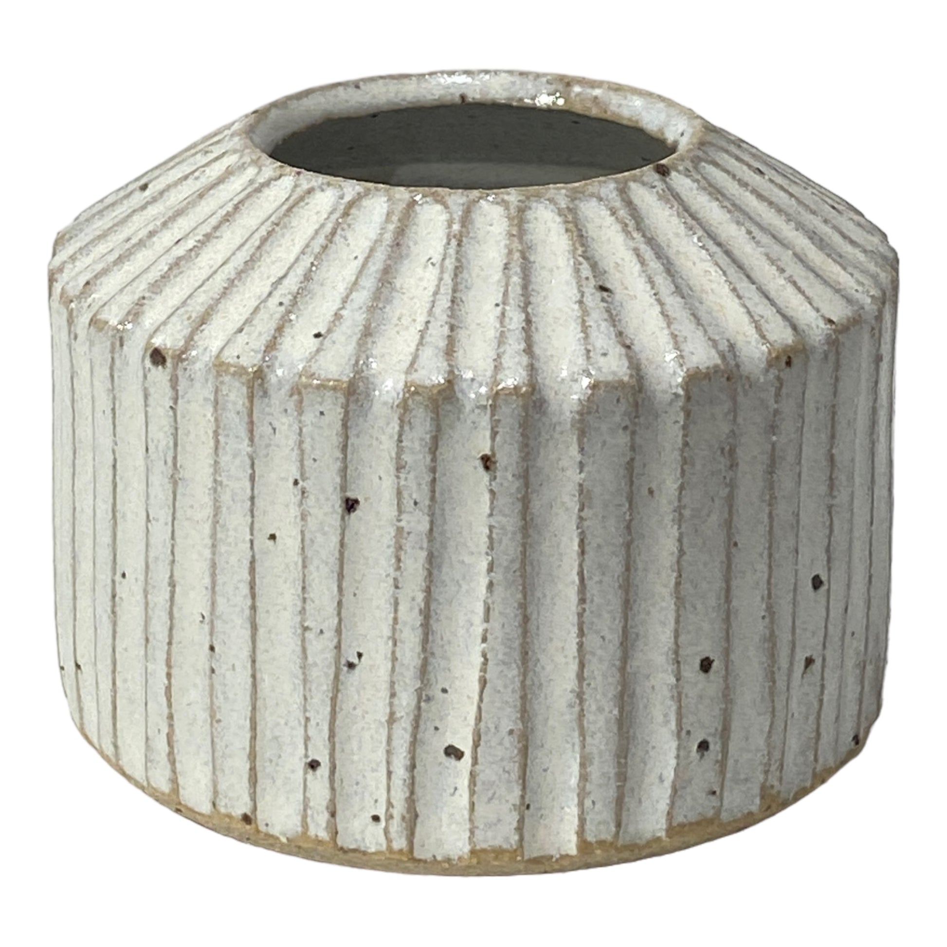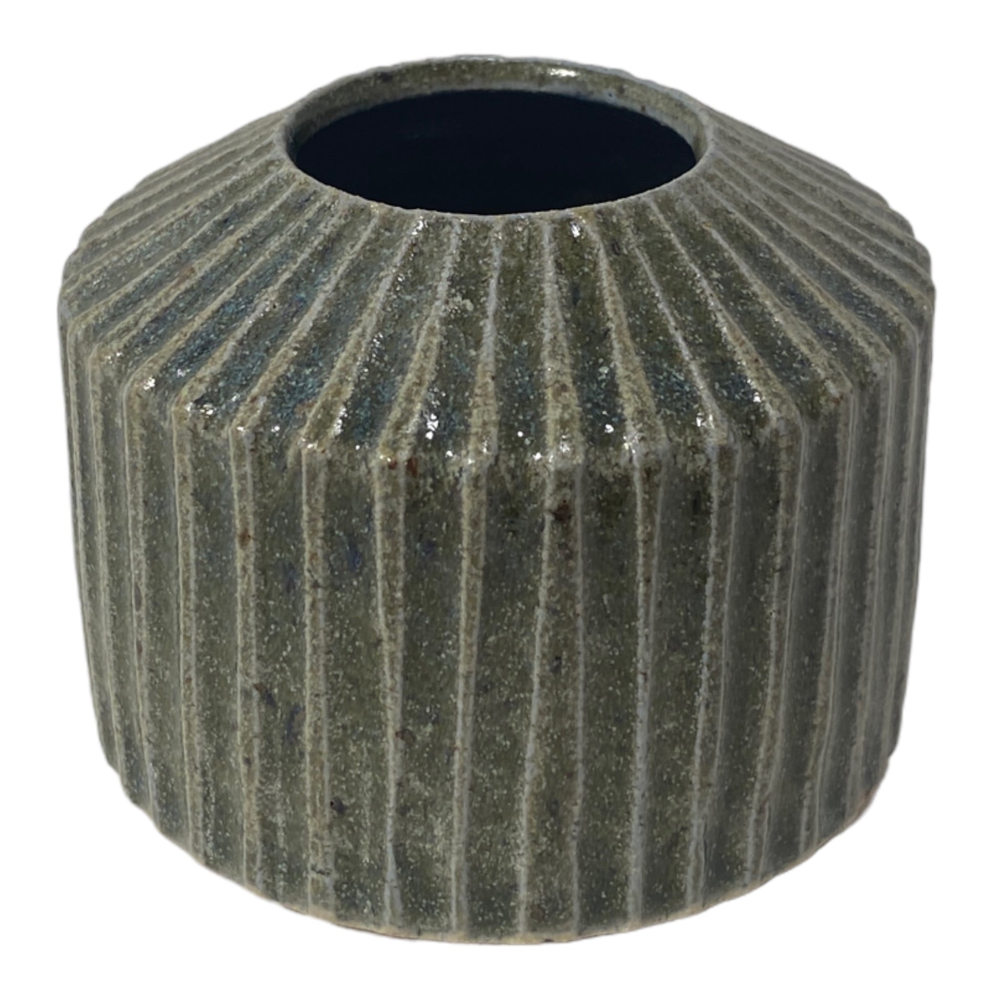 Tilføj et strejf af håndlavet skønhed til din indretning med denne keramik vase fra den danske keramiker Ida Høstrup. Vasen er omhyggeligt hånddrejet og dekoreret med et karakteristisk rillet mønster, der giver et unikt og elegant udtryk.