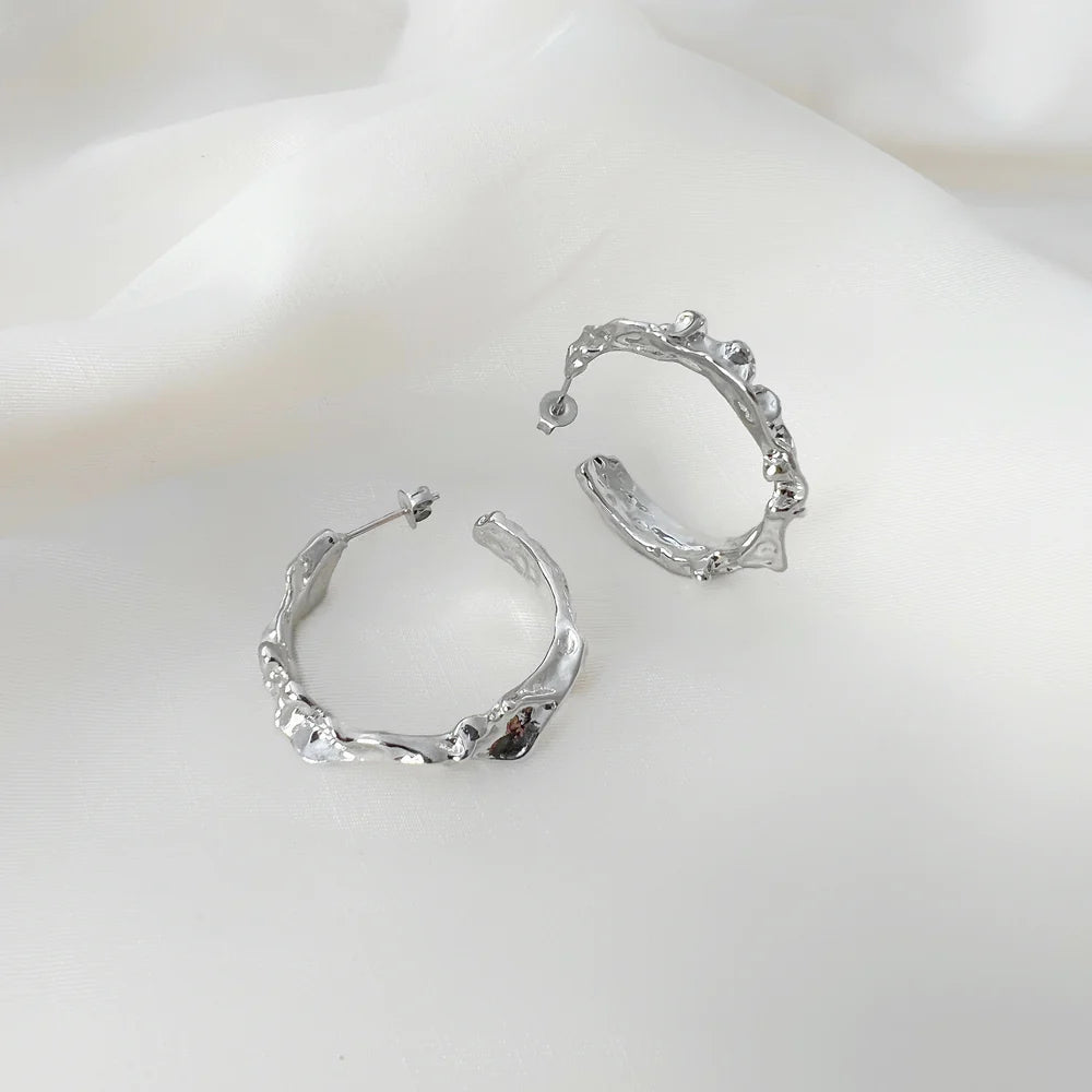 Store hoops / hoop øreringe med en banket og shiny overflade som giver et organisk, chunky og unikt look. Prisen er pr. par (2 stk), og en lækker smykkeæske følger med. Øreringe.