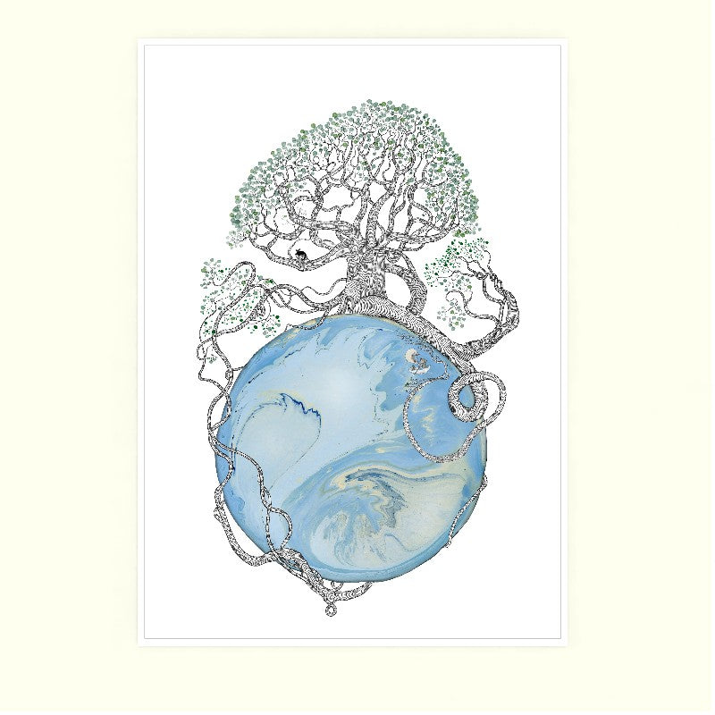Et poetisk og detaljemættet kunsttryk fra Joanna Jensens serie Ny Verden, hvor akvarel og fineliner mødes i et legende og harmonisk udtryk.