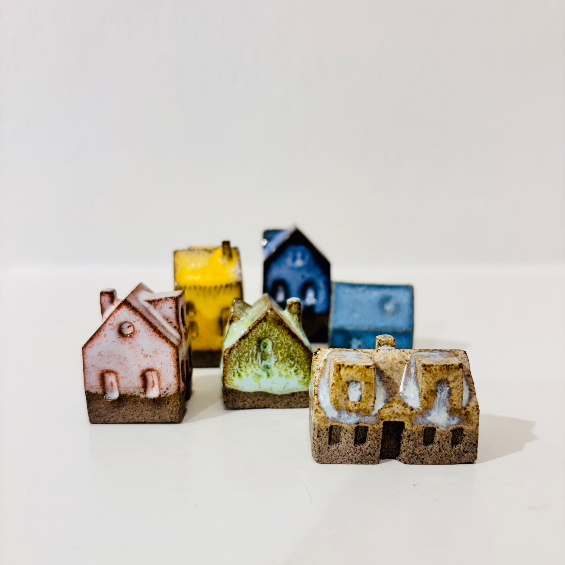 Husene er alle unikke og lavet i hånden. De kan godt lide at de bliver forskellige. Nogle med en lille altan, nogle med en fugl på taget, nogle med en trappe og nogle helt enkle. Det bliver eventyrligt at forstille sig hvem der kan bo i netop dette lille hus. Husene kan stå i en vindueskarm, på en billedramme, i en amagerhylde eller som pynt mellem smukke ting på reolen. De er en skøn gave til dem der lige er flyttet hjemmefra eller har købt hus.
