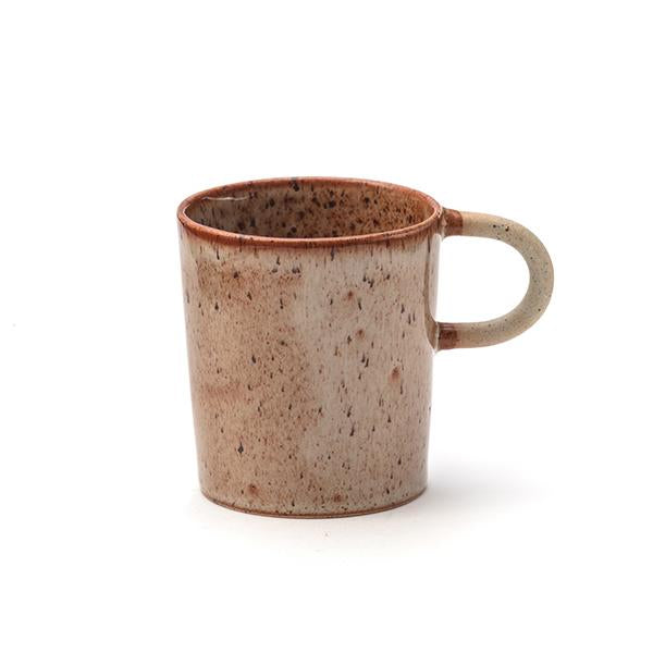 En lille, smuk kop i stentøj – ideel til en stærk espresso, en lille sort kaffe eller måske en kop te til ro på farten. Koppen rummer 1,5 dl og har en fin, spinkel hank, der trods sit lette udtryk er både holdbar og funktionel. Hanken giver et behageligt greb med god plads til fingrene, og koppen ligger naturligt i hånden – hvad end du nyder noget varmt eller koldt.