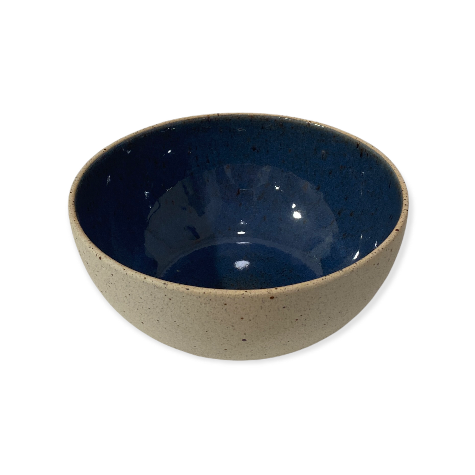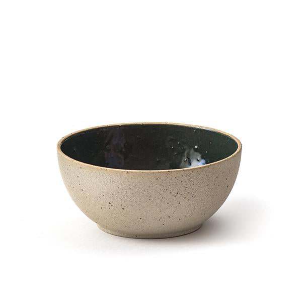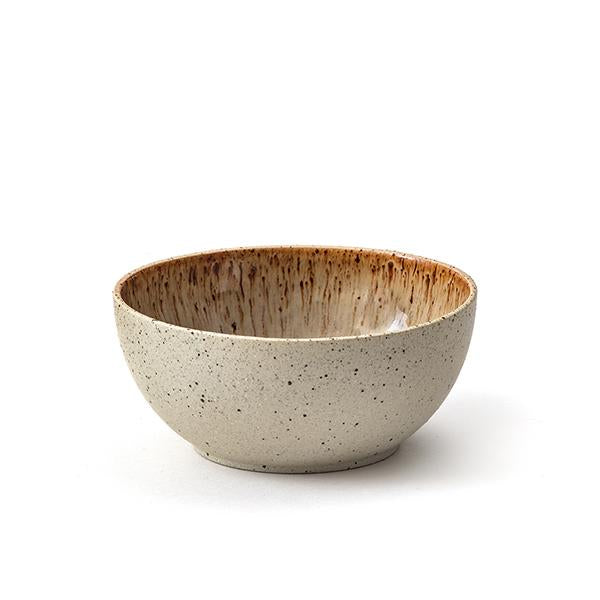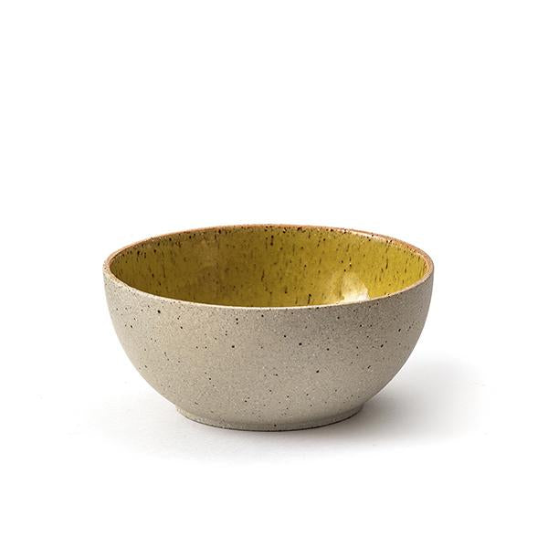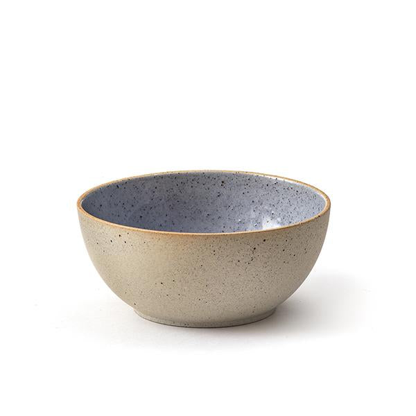 Skålen er en del af Colours-serien fra Lars Rank – et keramisk stel i rene, enkle former. Alle dele er støbt i beige stentøjsler tilsat mørk chamotte og lava, hvilket giver glasurerne dybde og de karakteristiske små brune prikker, der gør hver skål unik med et levende og varmt udtryk.