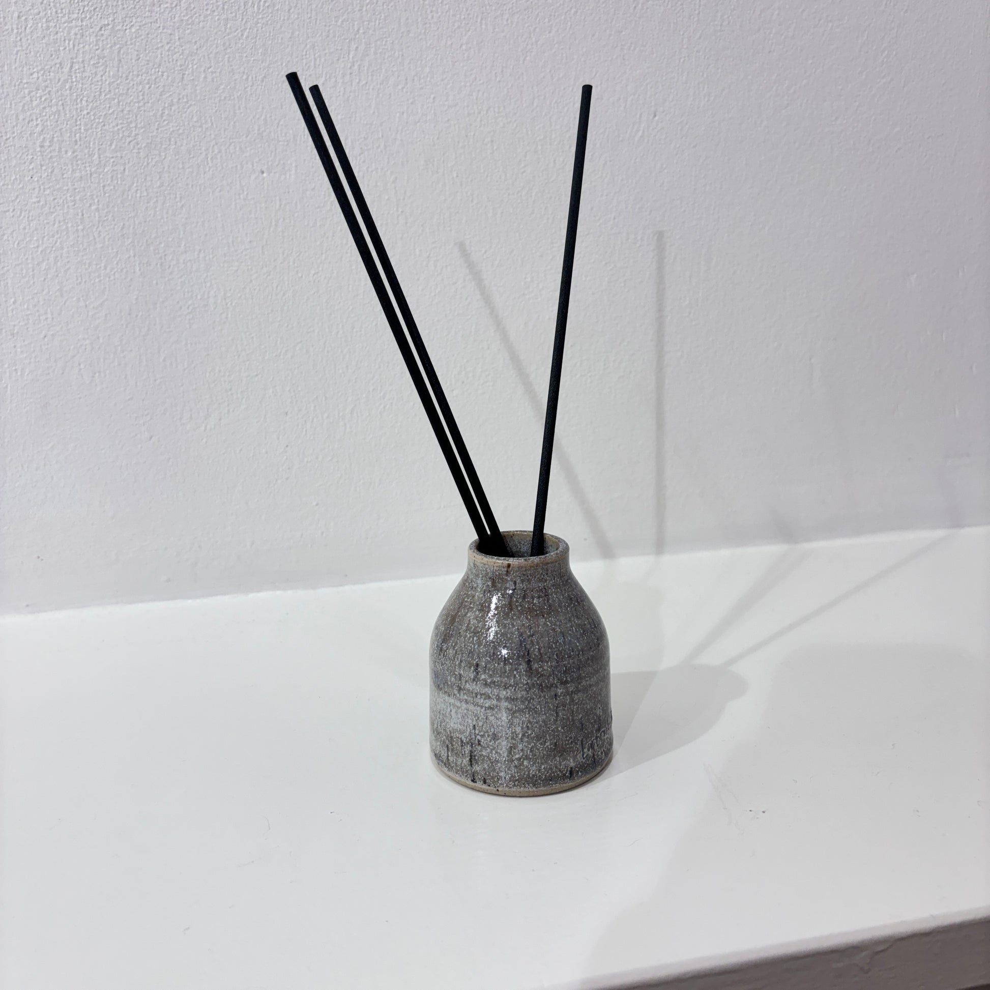 Denne håndlavede unika vase fra Anna ved Lerbruket Studio i Malmø er perfekt til duftpinde, diffusers eller små blomster fra haven. Med sit minimalistiske design og unikke udtryk passer vasen smukt ind i både moderne og klassiske hjem. Hver vase er lavet af overskydende ler fra Annas keramikundervisning, hvilket gør den til en bæredygtig og enestående tilføjelse til din indretning.