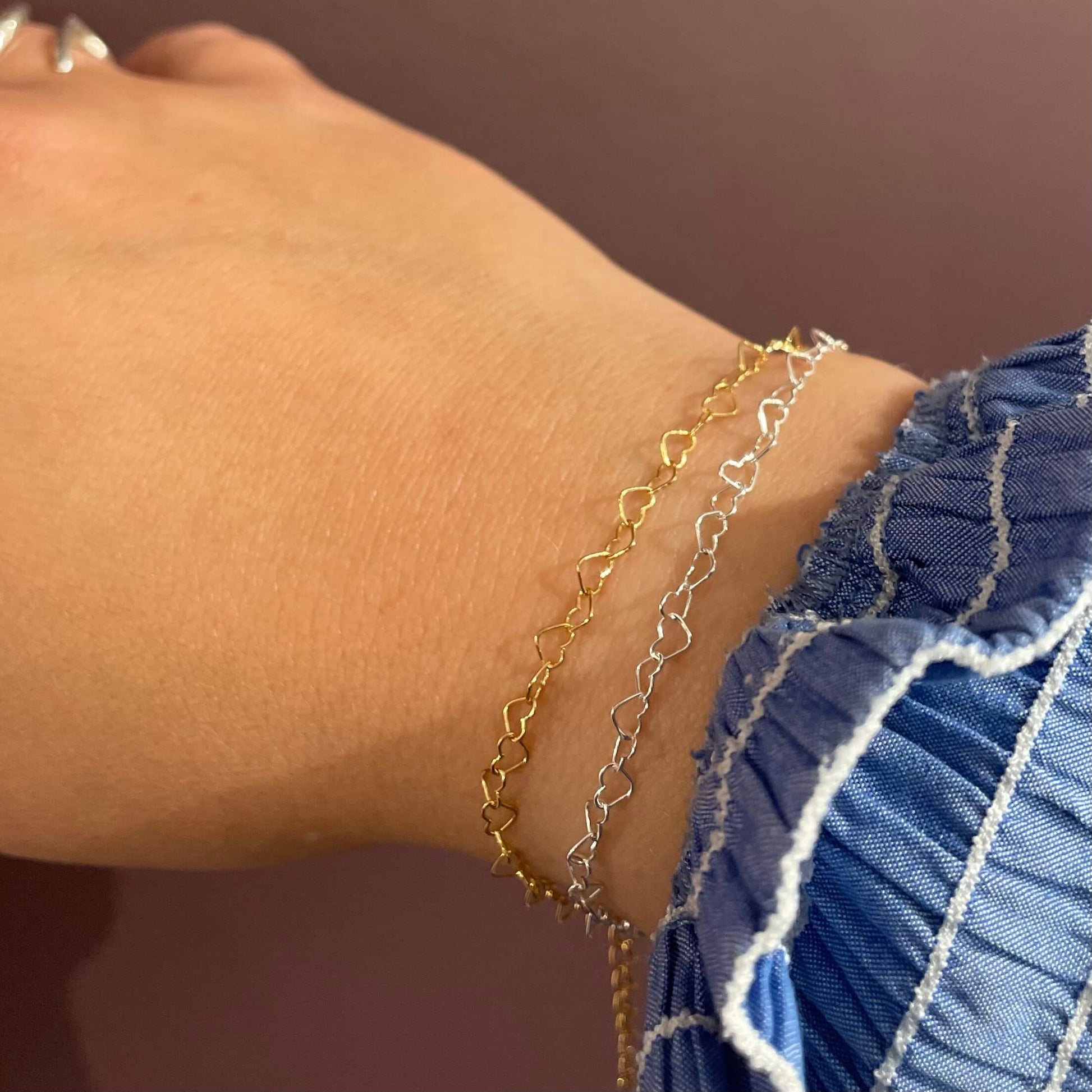 Love armbåndet fra Lone P er en delikat kæde med små hjerter, der elegant hænger sammen og skaber et let og feminint udtryk. Det enkle design gør armbåndet perfekt til både hverdagsbrug og særlige anledninger.