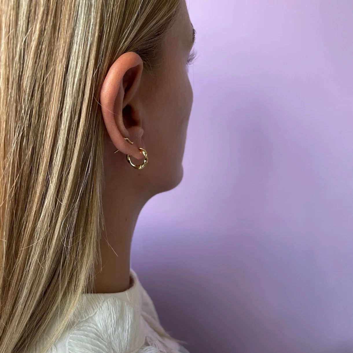 Click simple twist-ørering er en af vores mest populære hoops, og vi forstår faktisk udmærket hvorfor. I hoopsene her har vi nemlig givet det helt klassiske look et tvist, så de skiller sig ud fra mængden og skaber blikfang på den smukkeste måde. Hoopsenes tvistede facon og skinnende overflade skaber flotte refleksioner, hvilket efterlader et elegant og feminint udtryk omkring øreflippen. Hoopsene pryder med deres 13 mm øret på diskret vis og kan dermed understrege en simpel stil, når det er ønsket. Omvendt kan du også nemt føje et personligt tvist til dit look ved at mikse dem med dine øvrige yndlingssmykker, så de bidrager til det udtryk, du ønsker at skabe.