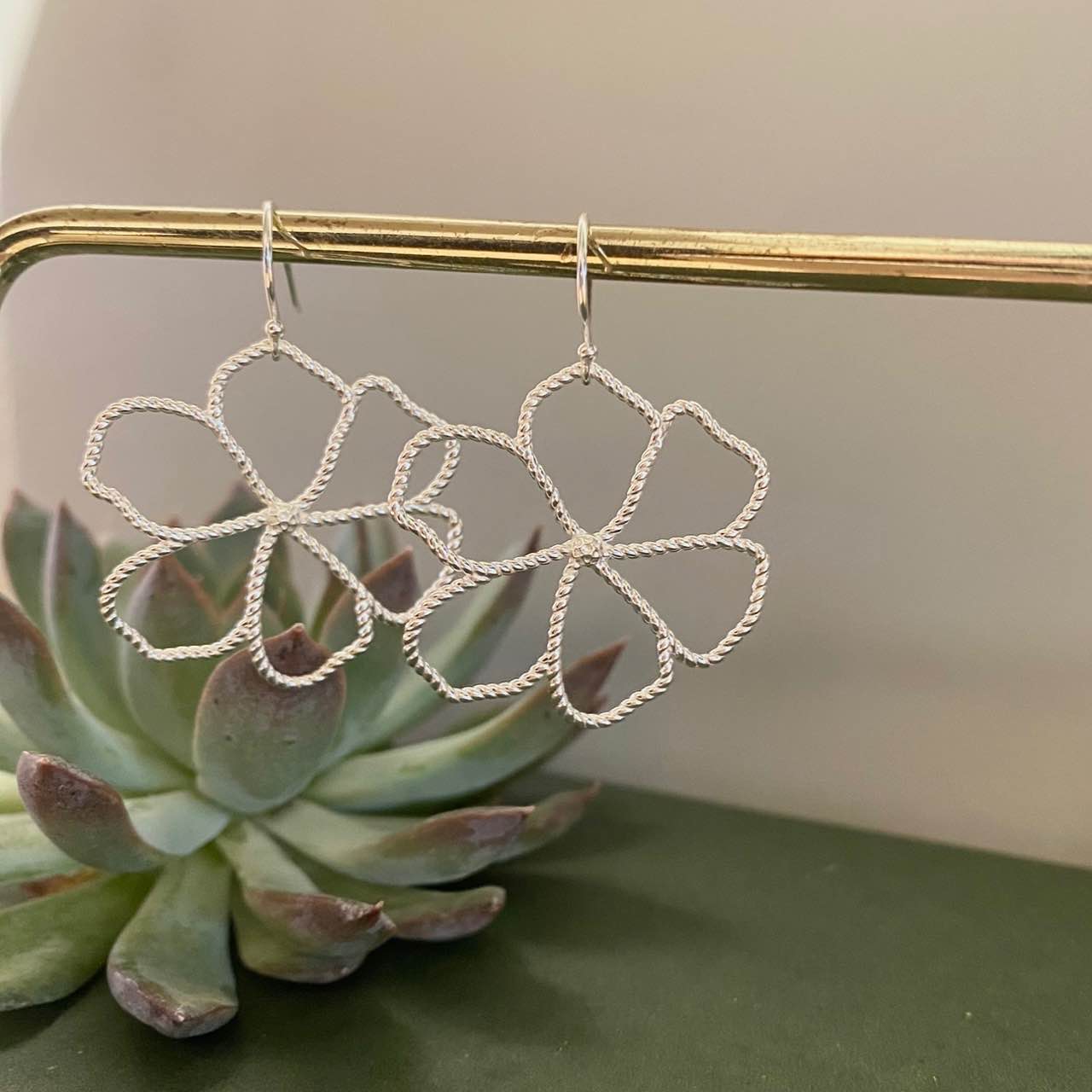 Hendes tanke bag Flower Power øreringen er, at det skal være en let øreringen. Det vejer næsten ingenting, så derfor vil du kunne holde ud og have den her ørering på en hel dag.