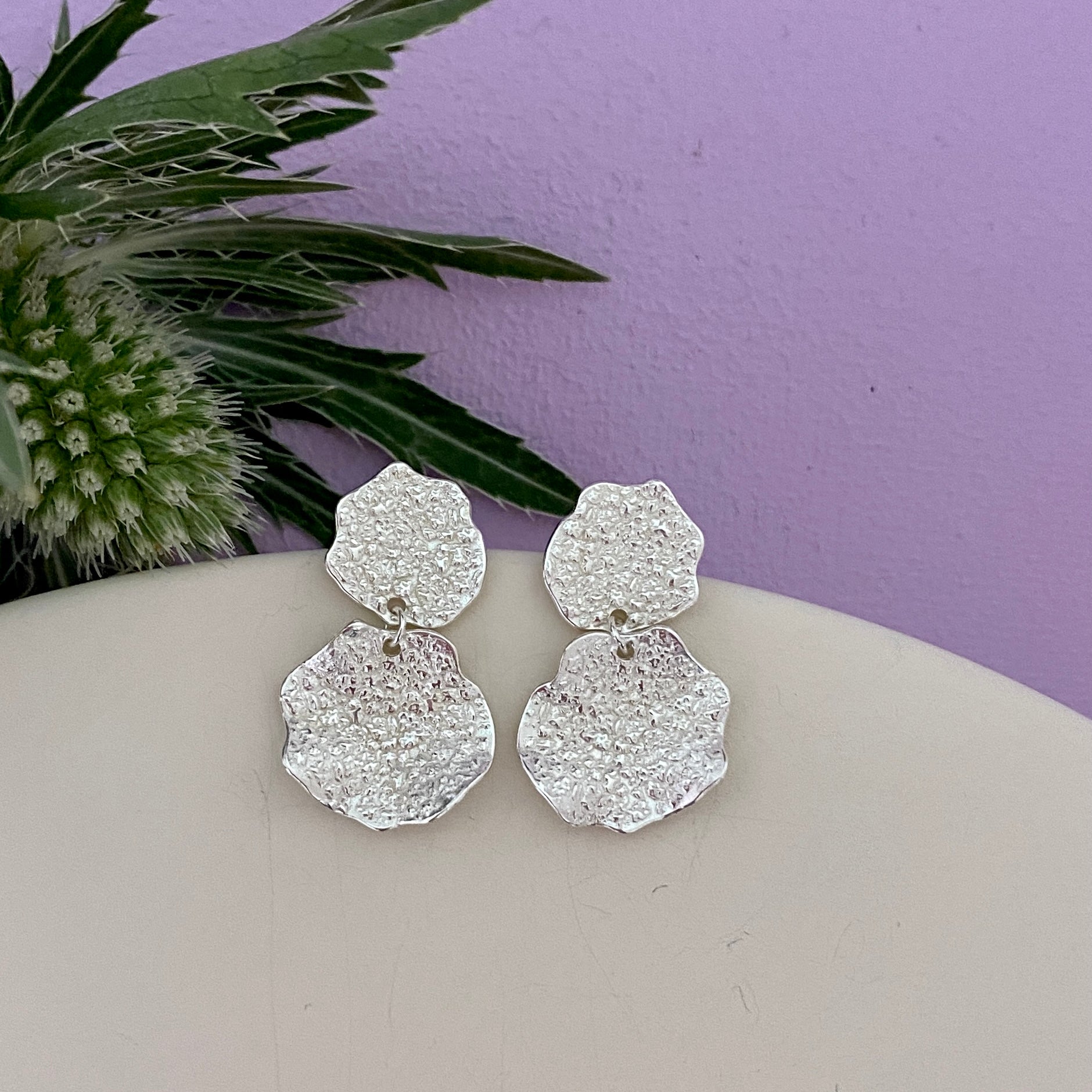 Lone P's Liva øreringe er indbegrebet af elegance med et moderne twist. Disse smukke hængeøreringe kombinerer en lille, diskret plade, der sidder tæt på øret, med en større plade, der hænger frit og bevæger sig med dig. Resultatet er et unikt og sofistikeret udtryk, der allerede har gjort Liva til en af favoritterne blandt smykkeelskere.