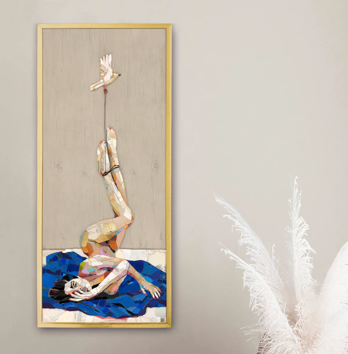 "Bird Woman" fra Madstitch er et unikt og betagende kunstværk, skabt af Ditte. Dette limited edition Giclée-tryk er trykt på struktureret bomuldspapir af højeste kvalitet, Canson Museum Rag 26 x 60 cm. Kun 100 eksemplarer vil blive udgivet, hver signeret og nummereret.