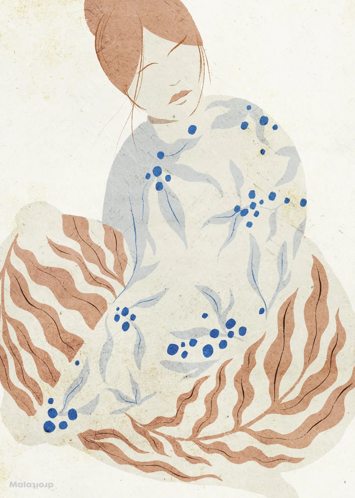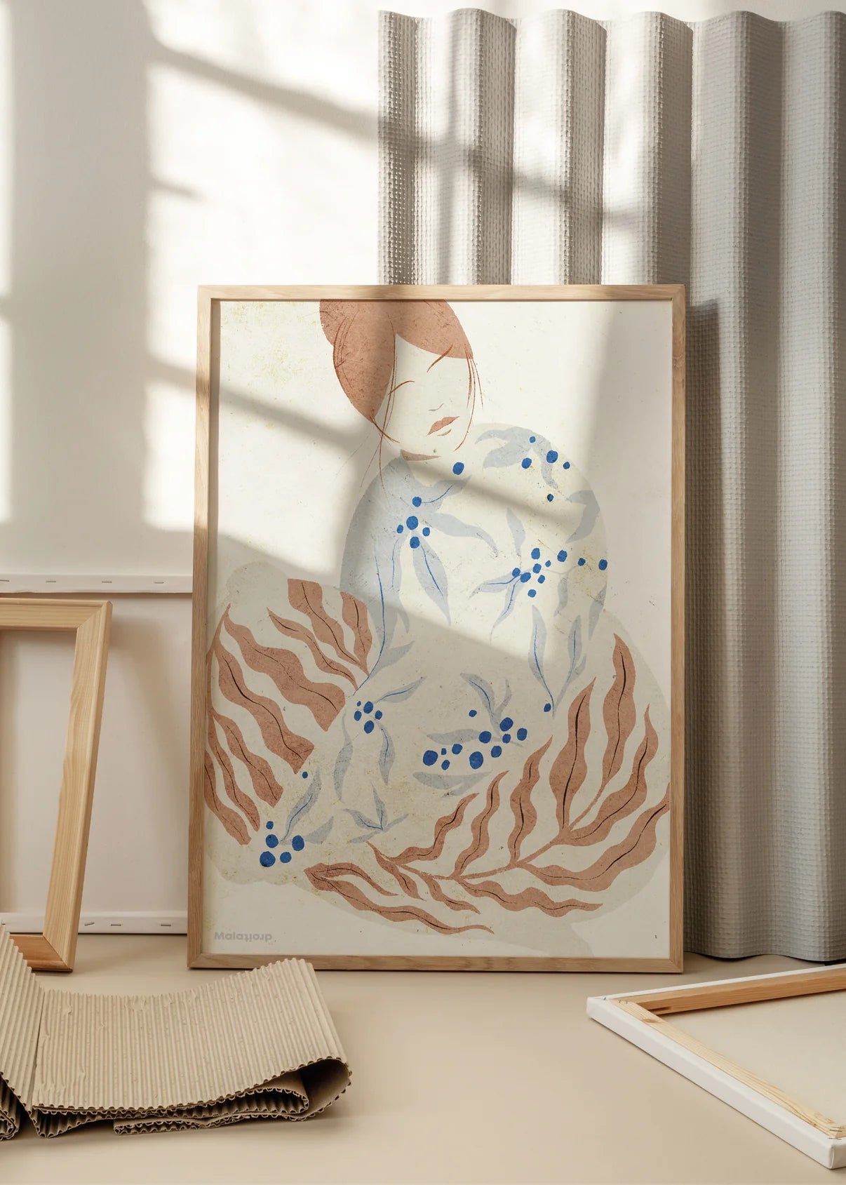 Bring ro og balance ind i dit hjem med "Roligt," en minimalistisk illustration fra Maladroit. De varme, brændte nuancer kombineret med subtile blå detaljer skaber et afslappet udtryk, der passer perfekt til den skandinaviske indretningsstil. Med sit enkle design er "Roligt" ideel til stuen, soveværelset eller kontoret, hvor det kan tilføje et strejf af stilfuld harmoni.