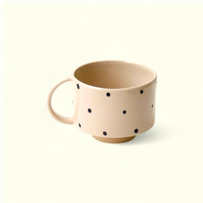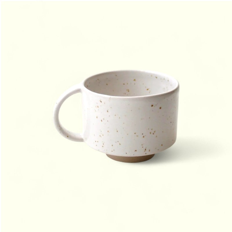 May Studios håndlavede keramikkop med hank er skabt til at blive en del af din daglige rutine. Med sit minimalistiske design og funktionelle udtryk passer den perfekt ind i ethvert køkken. Koppen er stabelbar, hvilket gør den både praktisk og pladsbesparende. Hver kop er støbt og glaseret i hånden, hvilket gør hver enkelt unik med små forskelligheder i glasuren.