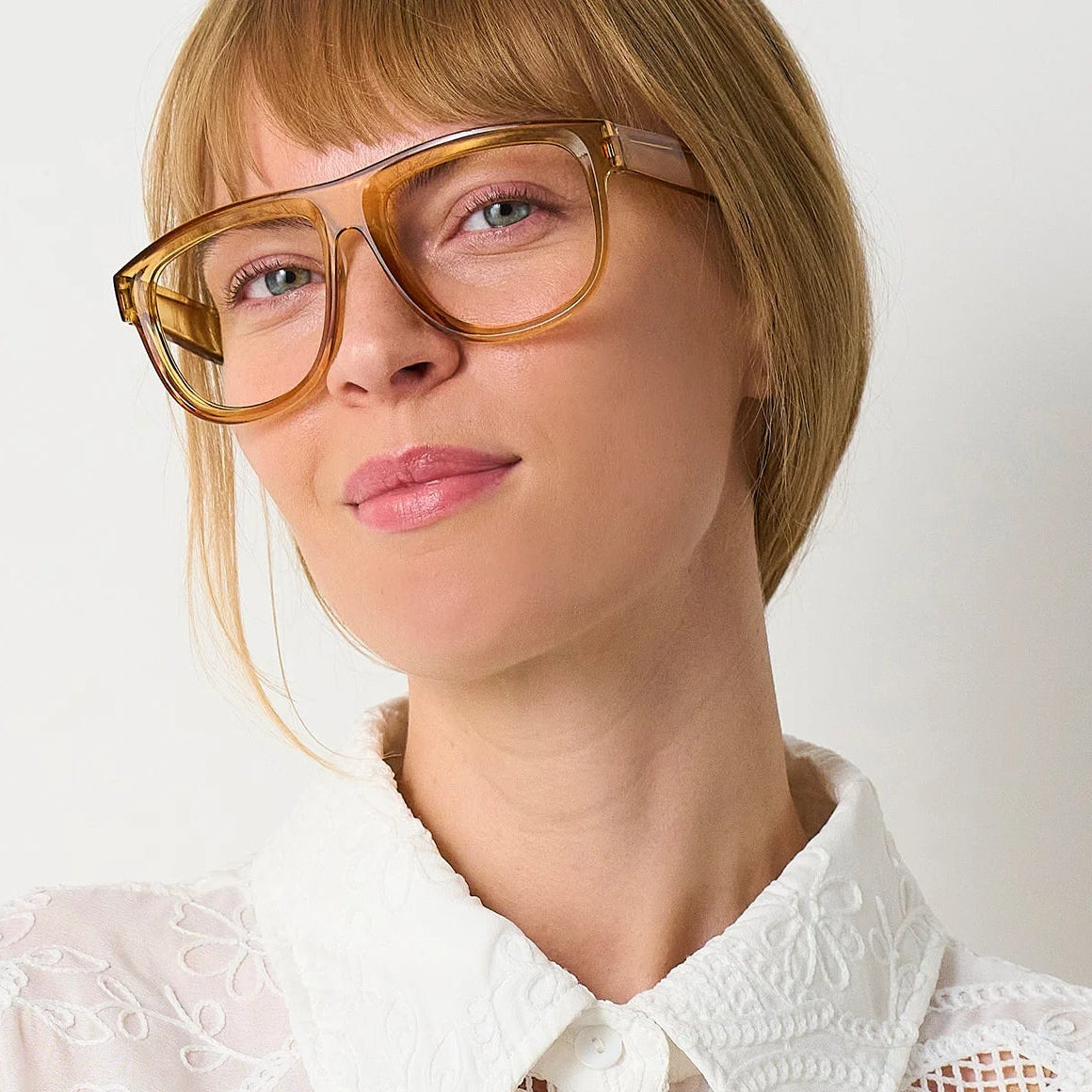 Brillen kommer i en smuk cool amber / ravfarve, som tilfører varme og kant til dit look. Det markante stel kombinerer mode og funktion i et unisex design, der passer til både hverdag og arbejde.