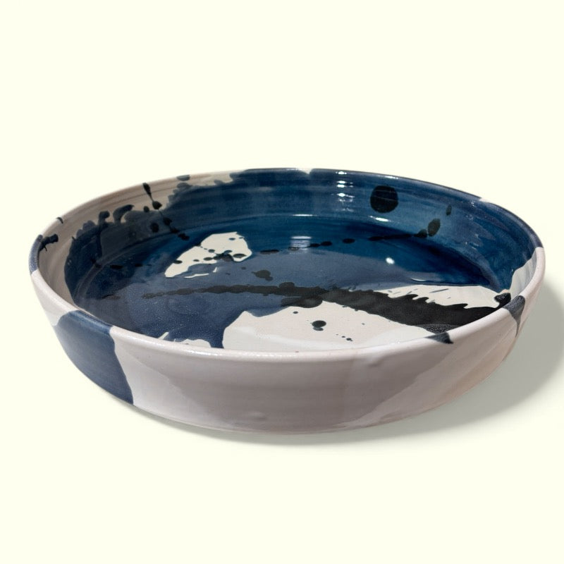 En rå og rustik skønhed fra keramiker Per Bo. Denne store fad er hånddrejet og håndglaseret i værkstedet i Kastrup, hvor Per Bo skaber keramik med dyb respekt for tradition, funktion og æstetik.