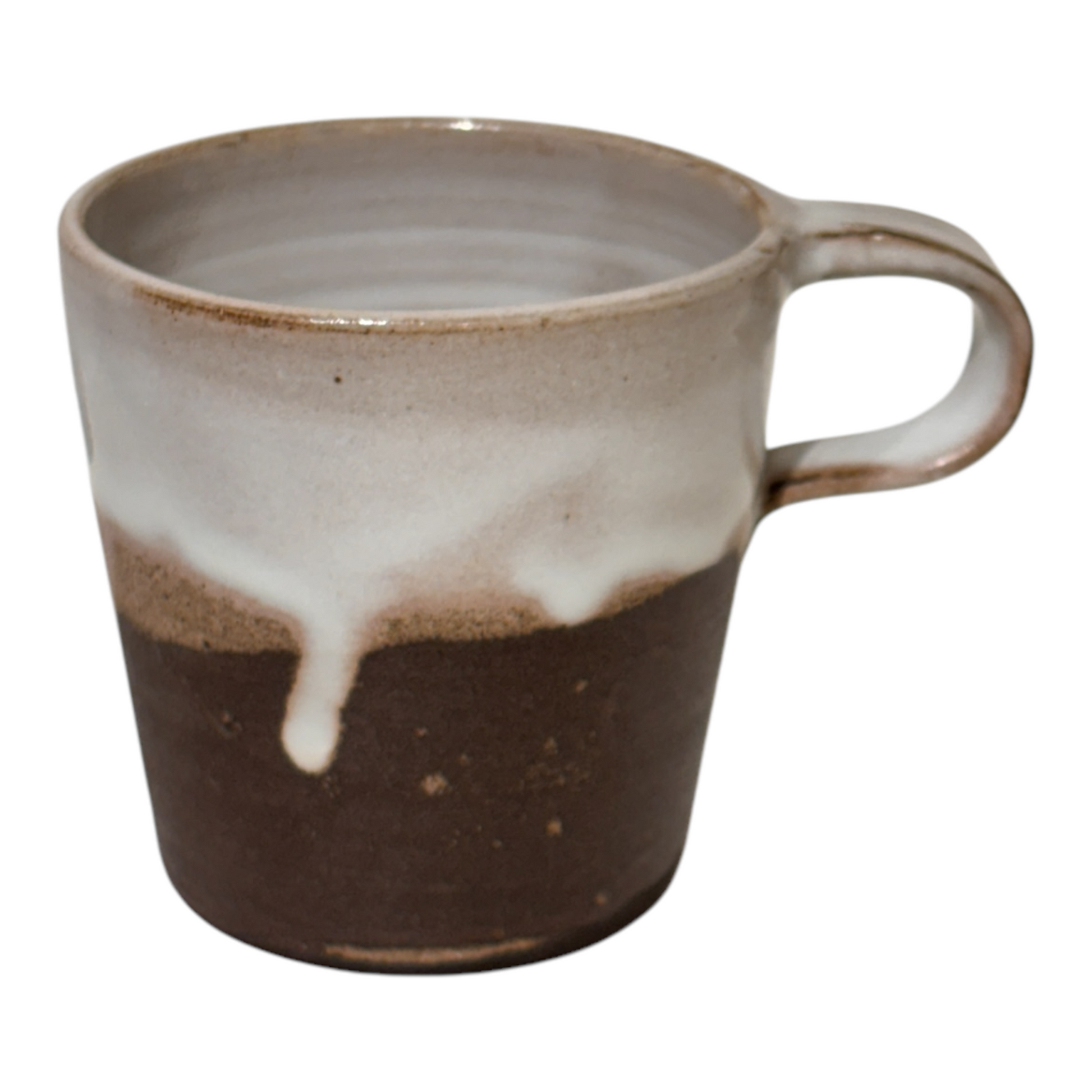 Denne håndlavede keramik kop fra Per Bo er et unikt stykke kunsthåndværk, skabt på hans værksted i Kastrup. Hver kop er drejet og glaseret i hånden, hvilket betyder, at der ikke findes to ens kopper – hver enkelt har sit eget udtryk og charme.