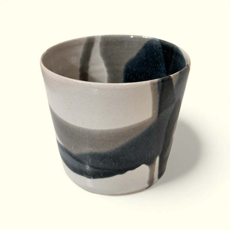 Denne håndlavede keramik kop fra Per Bo er et unikt stykke kunsthåndværk, skabt på hans værksted i Kastrup. Hver kop er drejet og glaseret i hånden, hvilket betyder, at der ikke findes to ens kopper – hver enkelt har sit eget udtryk og charme.