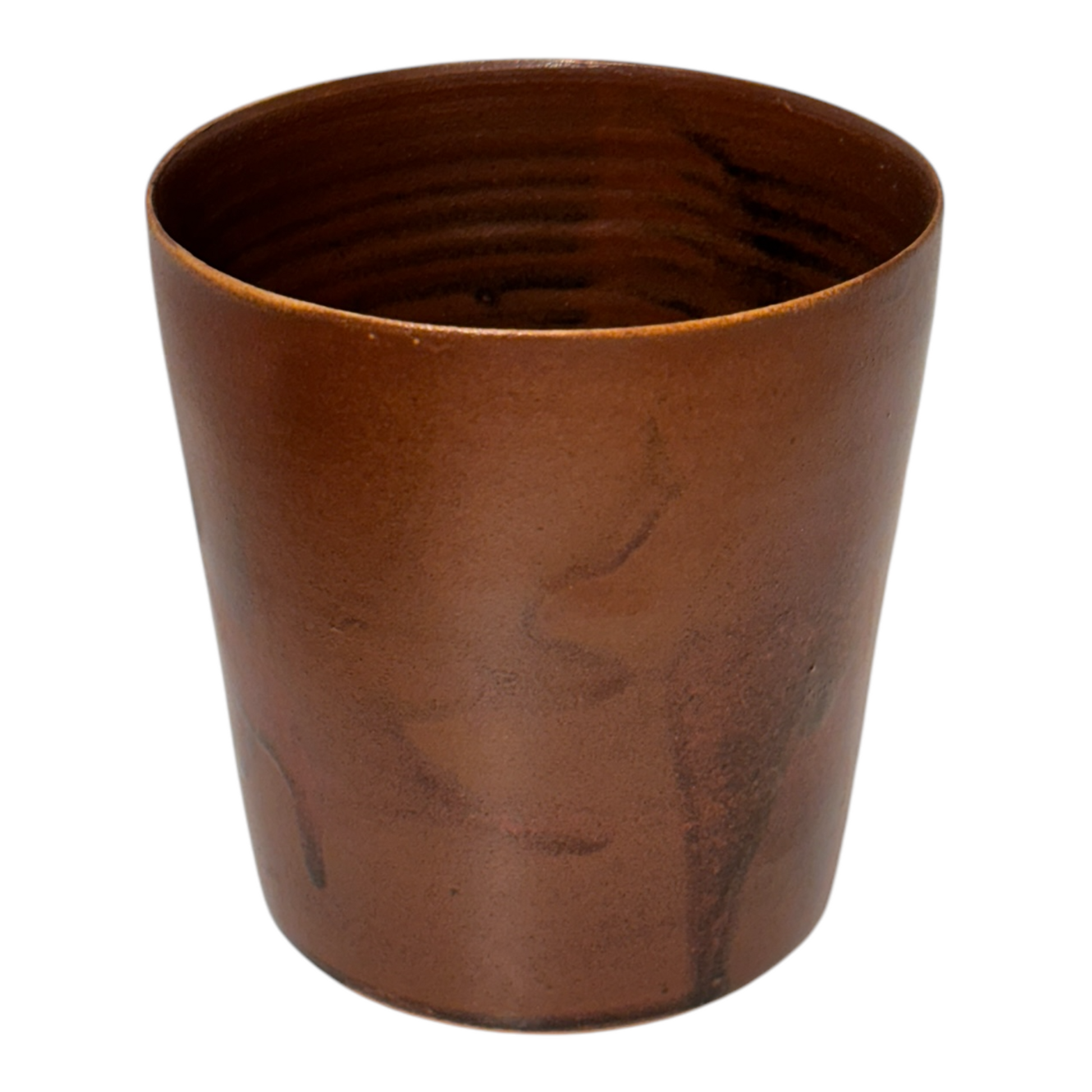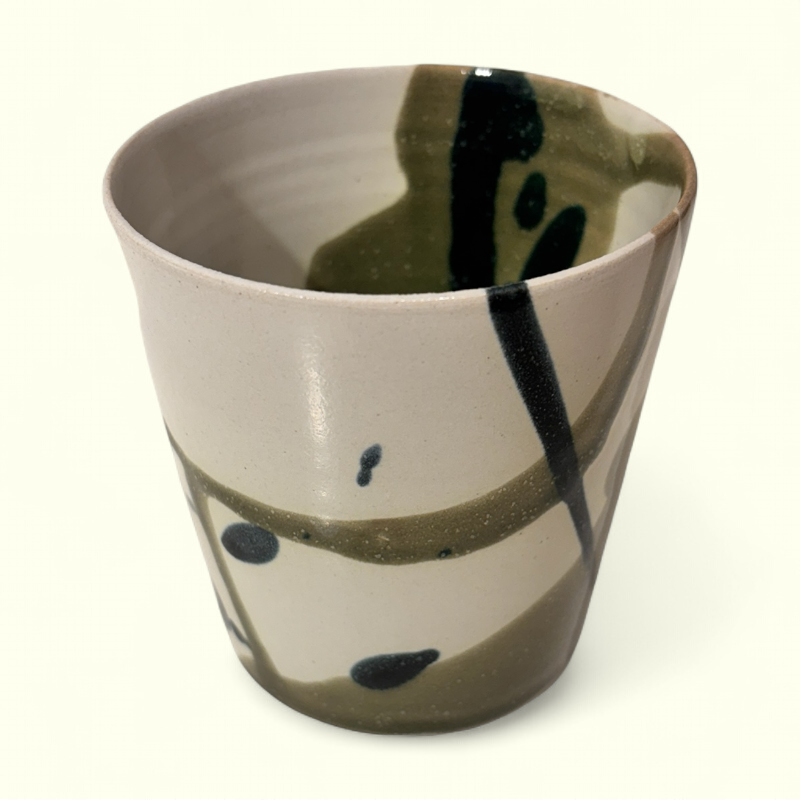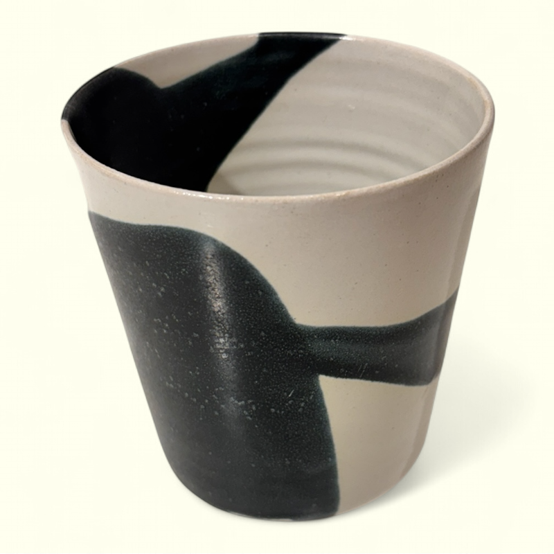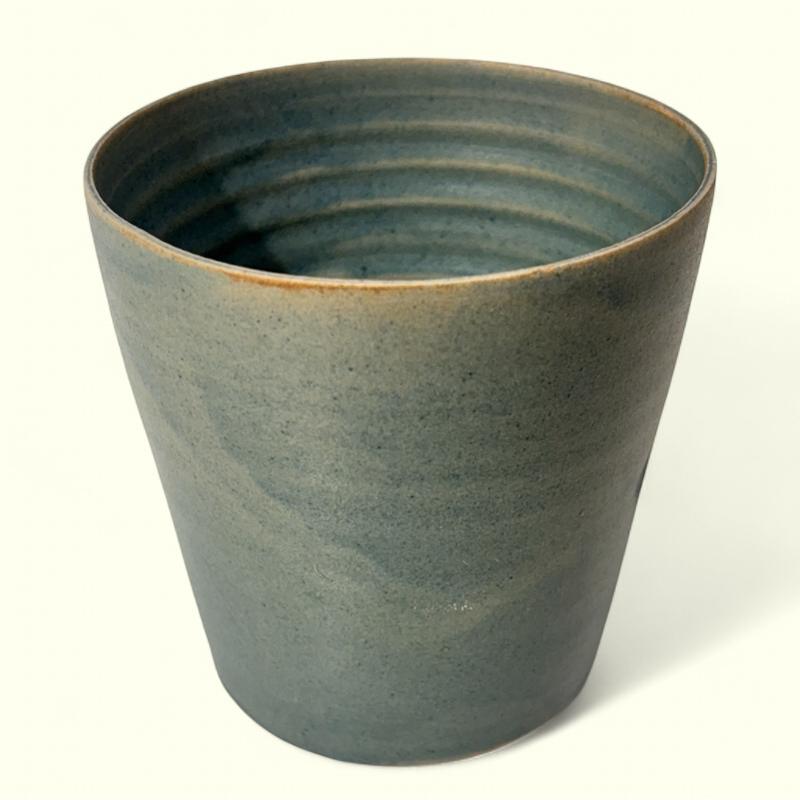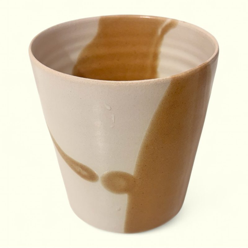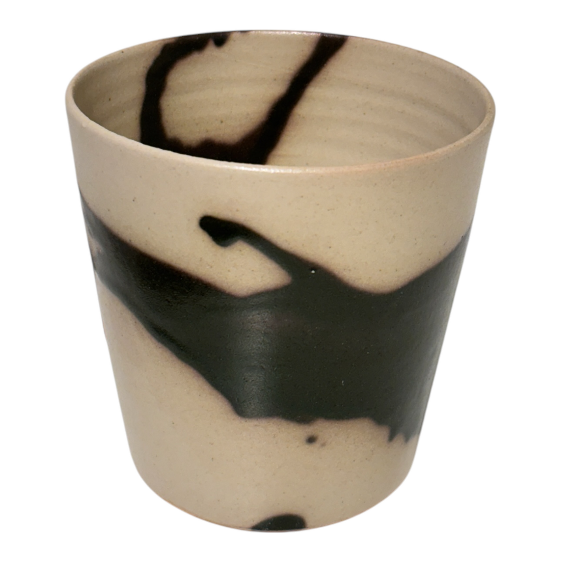 Denne håndlavede keramik kop fra Per Bo er et unikt stykke kunsthåndværk, skabt på hans værksted i Kastrup. Hver kop er drejet og glaseret i hånden, hvilket betyder, at der ikke findes to ens kopper – hver enkelt har sit eget udtryk og charme.