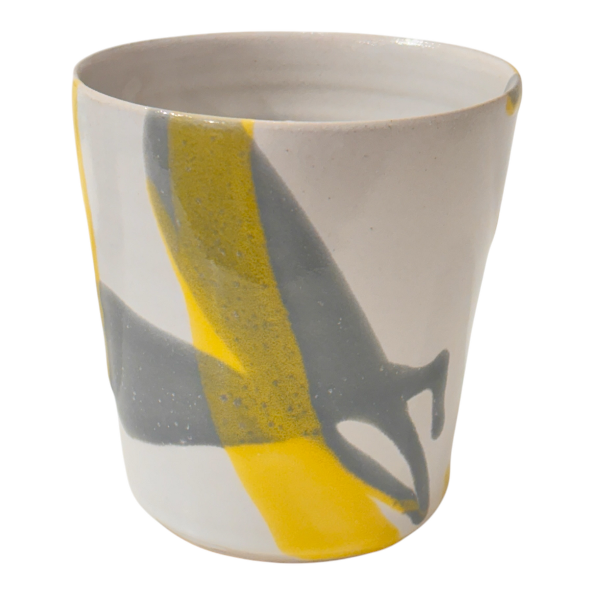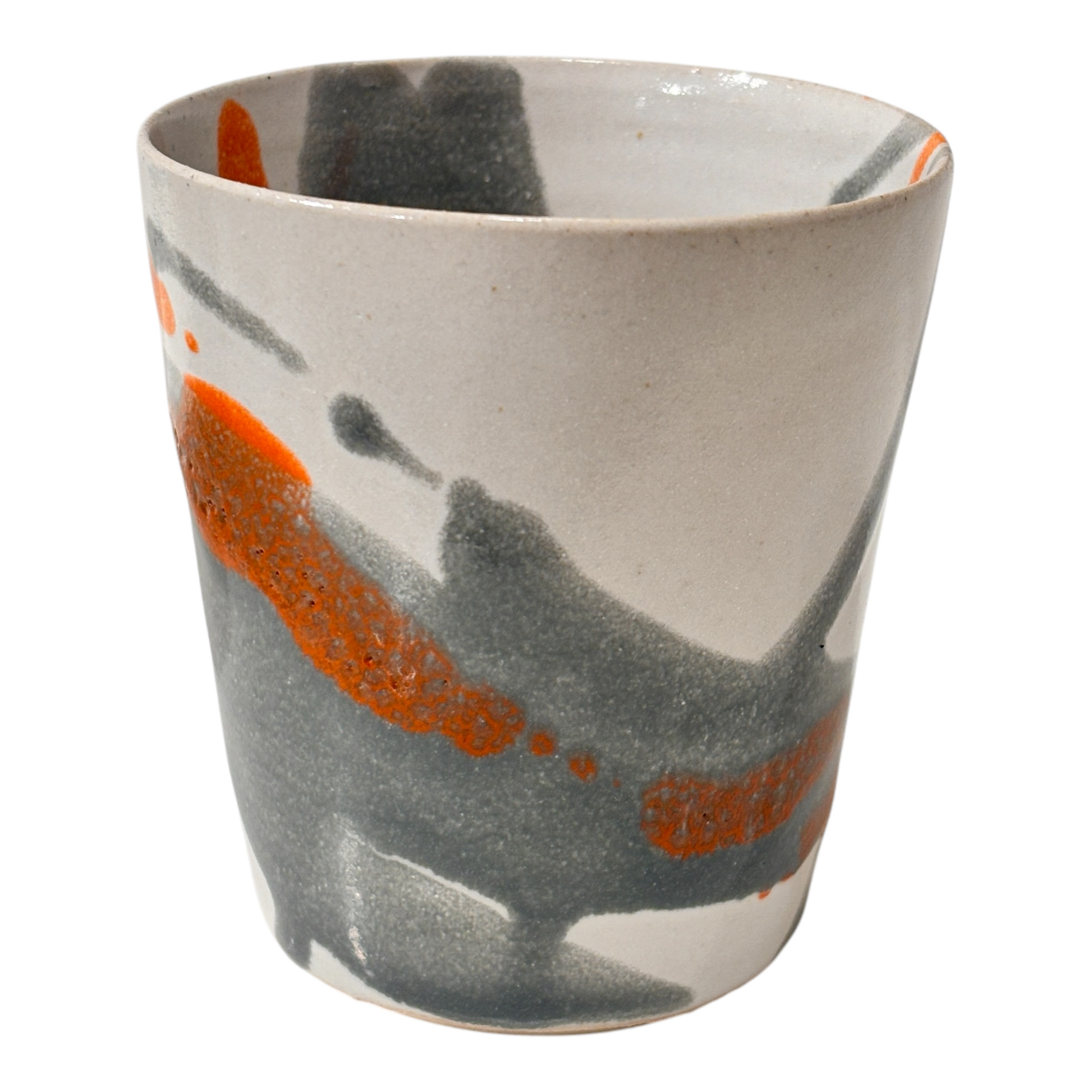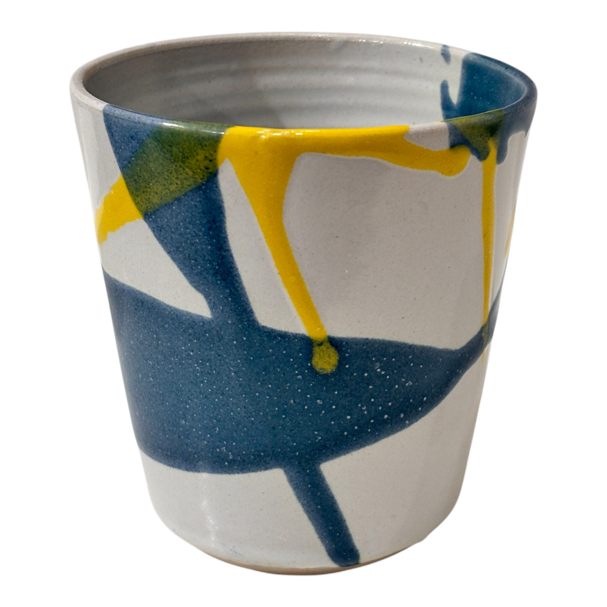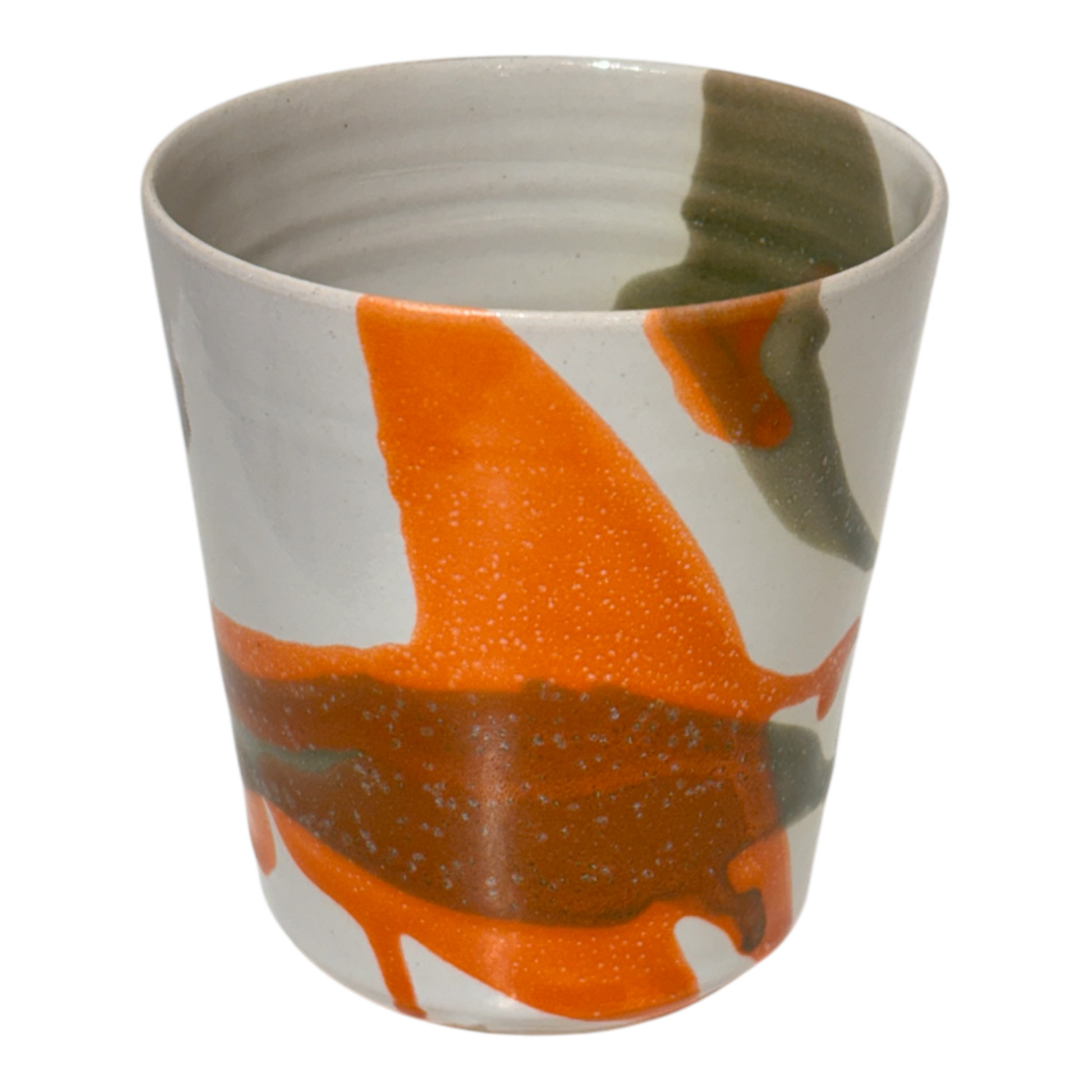 Denne håndlavede keramik kop fra Per Bo er et unikt stykke kunsthåndværk, skabt på hans værksted i Kastrup. Hver kop er drejet og glaseret i hånden, hvilket betyder, at der ikke findes to ens kopper – hver enkelt har sit eget udtryk og charme.