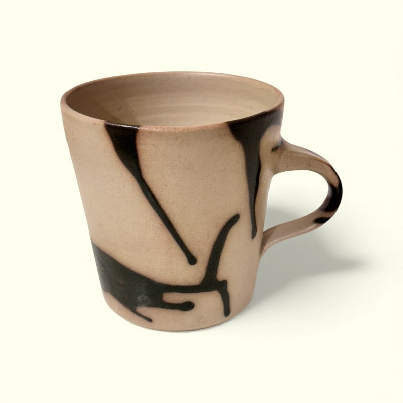 Denne håndlavede keramik kop med hank fra Per Bo er et unikt stykke kunsthåndværk, skabt på hans værksted i Kastrup. Hver kop er drejet og glaseret i hånden, hvilket betyder, at der ikke findes to ens kopper – hver enkelt har sit eget udtryk og charme.