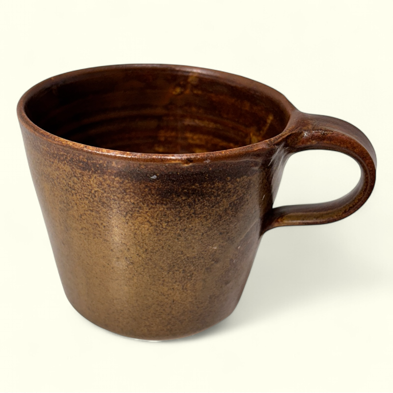 Denne håndlavede keramik kop fra Per Bo er et unikt stykke kunsthåndværk, skabt på hans værksted i Kastrup. Hver kop er drejet og glaseret i hånden, hvilket betyder, at der ikke findes to ens kopper – hver enkelt har sit eget udtryk og charme.