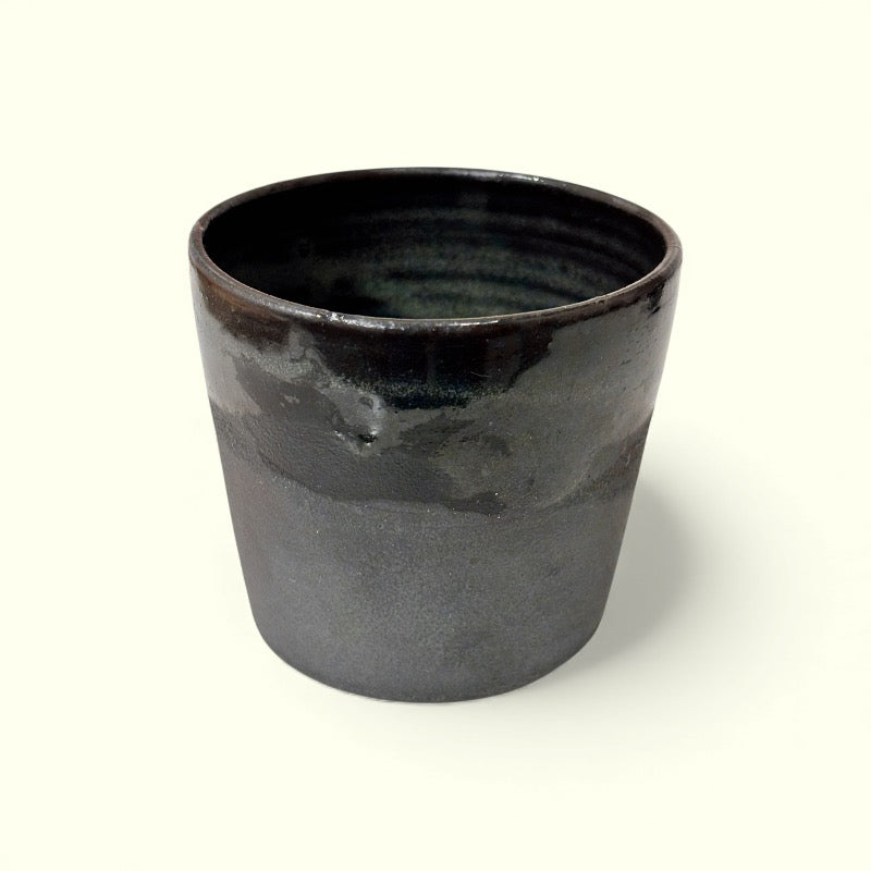 Denne håndlavede keramik kop fra Per Bo er et unikt stykke kunsthåndværk, skabt på hans værksted i Kastrup. Hver kop er drejet og glaseret i hånden, hvilket betyder, at der ikke findes to ens kopper – hver enkelt har sit eget udtryk og charme.