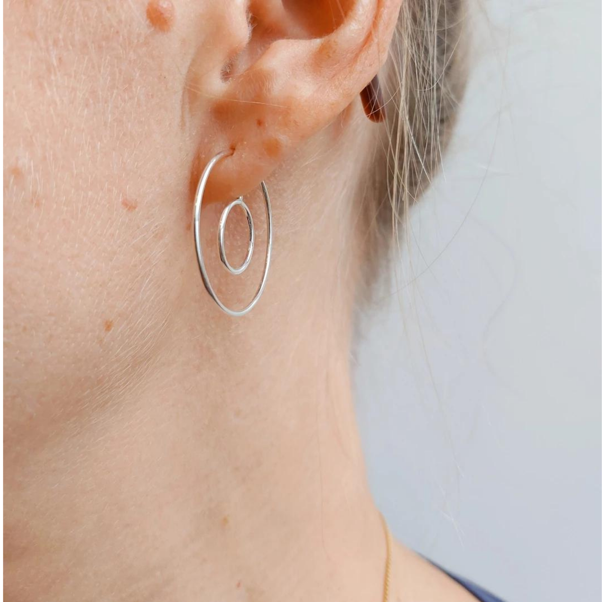 Øreringe med et enkelt og grafisk udtryk. Øreringene er en variant af Findmyway, hvor en del af øreringen skal igennem øret og fungere som lås. Øreringen skal sætte i fra bagsiden af øret. De sælges som et par og de findes både i sølv og forgyldt sølv.