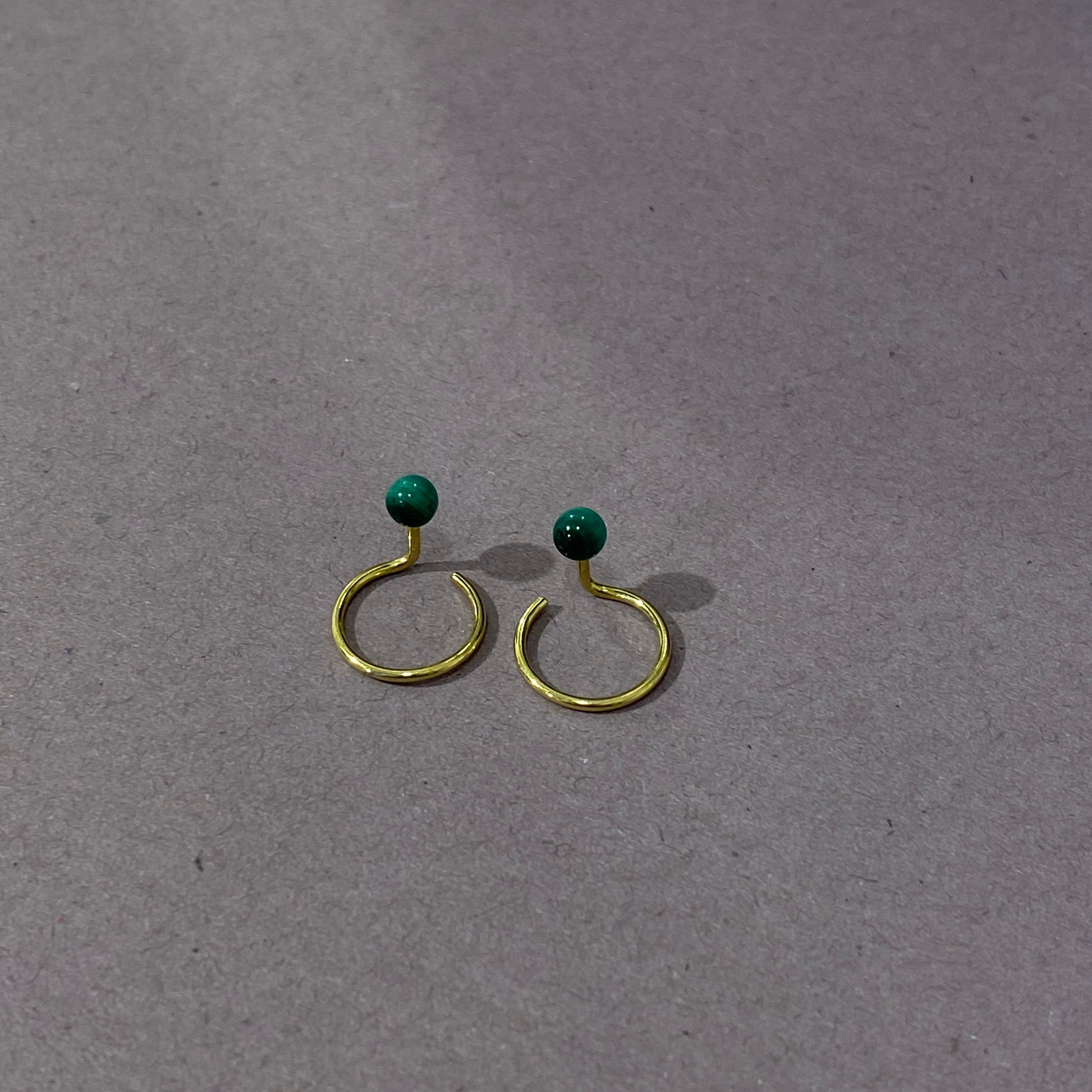Dette er en variant af onepiece øreringene, hvor trådcirklen fungerer som lås. Du undgår dermed en lås, der stikker og generer. Hele cirklen skal igennem øret. Der er en højre og venstre - åbningen på tråden skal vende ind mod kinden, når øreringen sidder i øret.