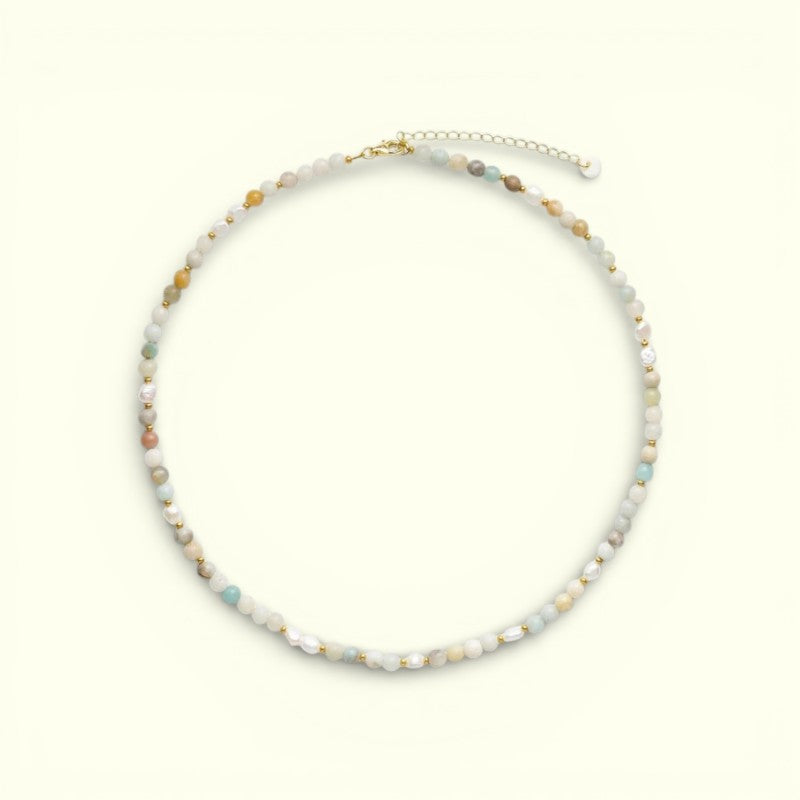 Ellie Ferskvandsperler Halskæde – Amazonit & Guld · Indre ro, sandhed og mod