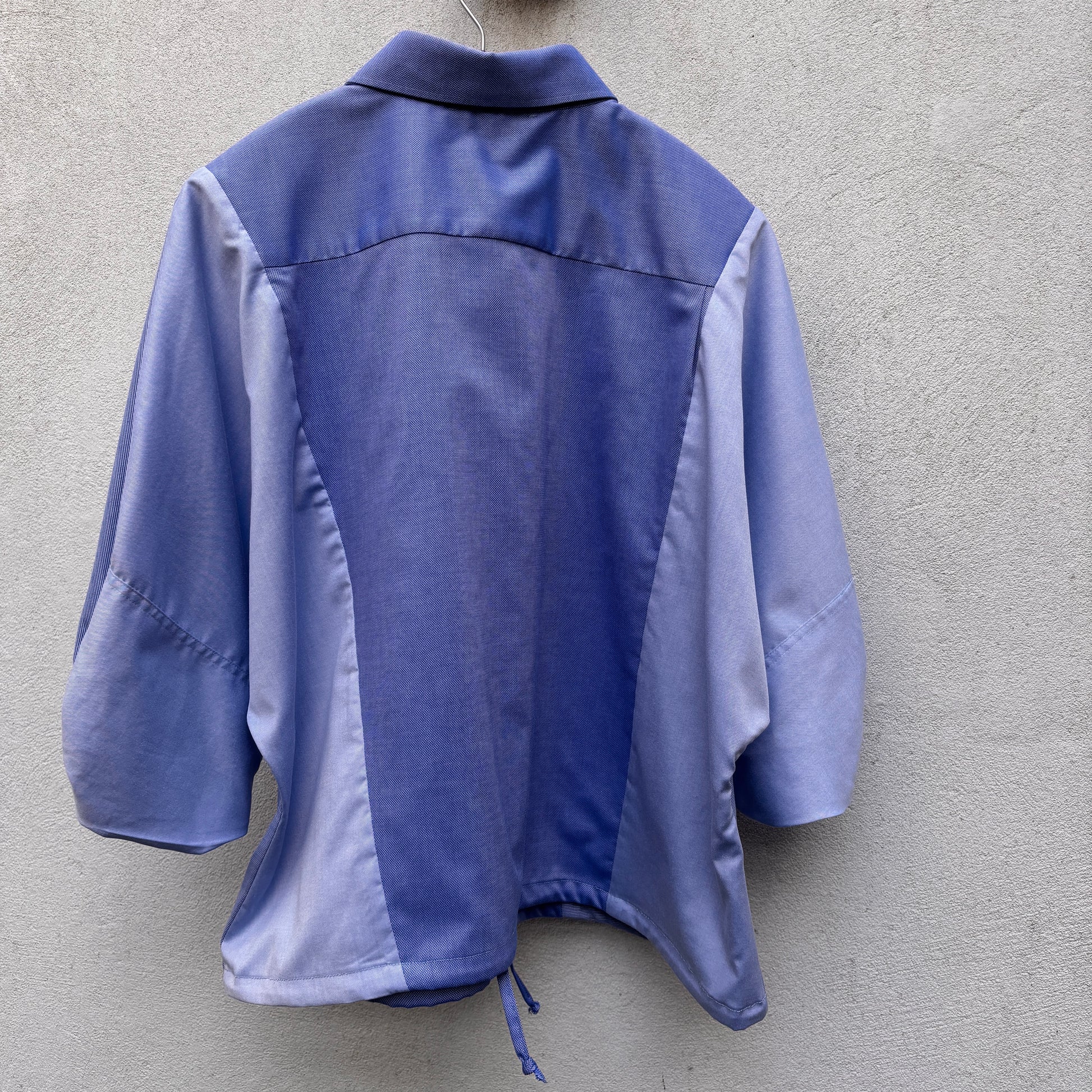 Skjorten er skabt af tre nøje udvalgte genbrugte herreskjorter, hvor farver, mønstre og kvalitet forenes i et unikt design. Den rummelige pasform gør den behagelig at have på, mens one size-modellen passer størrelse 36-44.